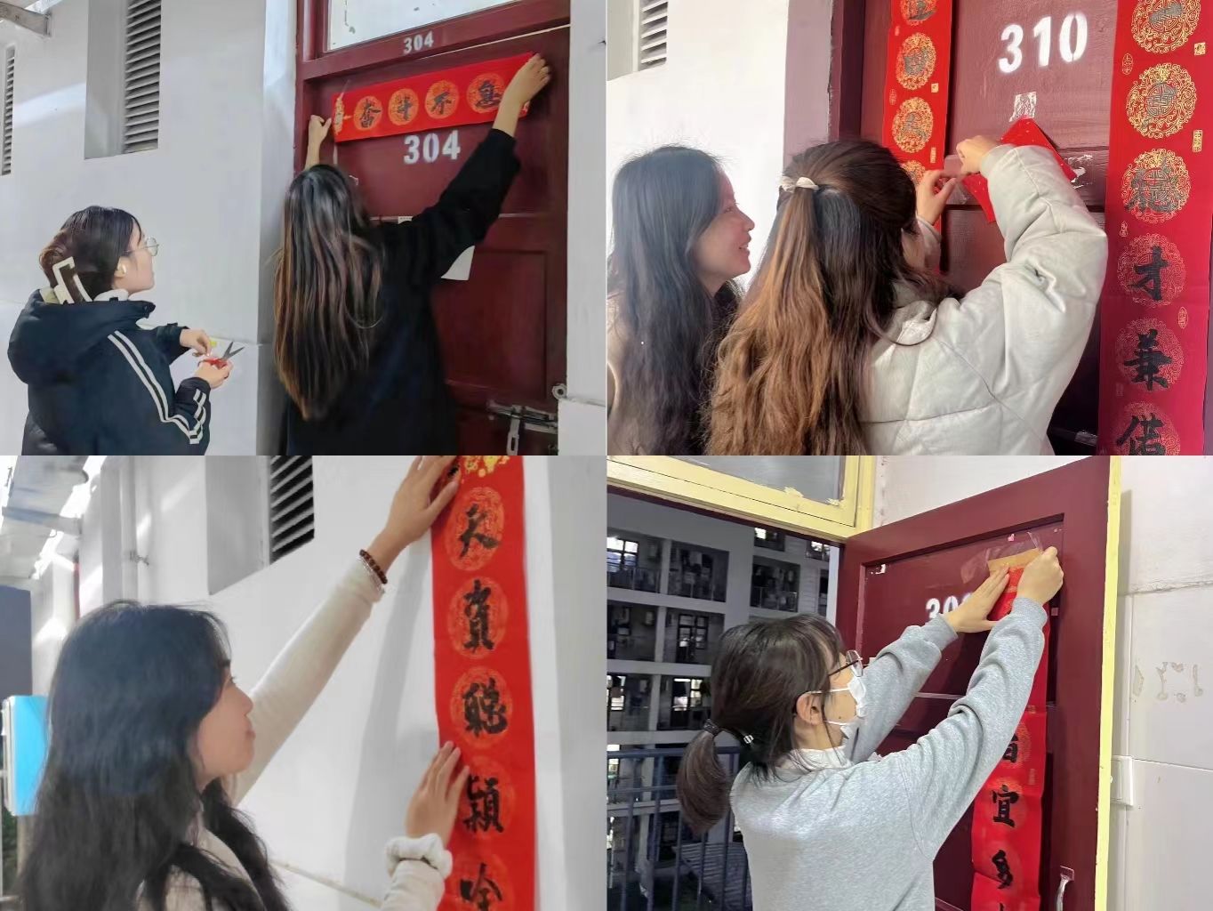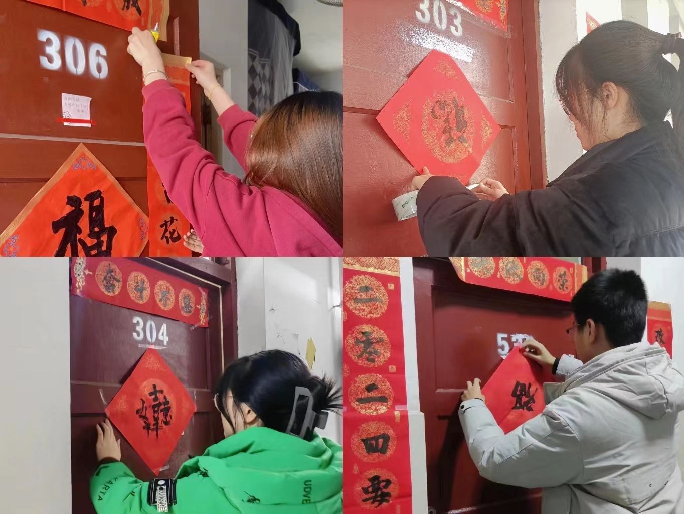 12月27日,2022级思想政治教育专业思政委员刘琪为班级各寝室送上手写春联,表达新年祝福,受到了同学们的一致称赞。刘琪用自己的笔墨在一张张绯红的纸上一笔一划地写下了对新年的期盼和祝福。“术业宜从勤学起,韶华不为少年留”“春来百花香满地,时来万事喜盈门”,一幅幅对联或妙言要道或诗意盎然,字里行间都承载着刘琪对同学们的衷心祝福。