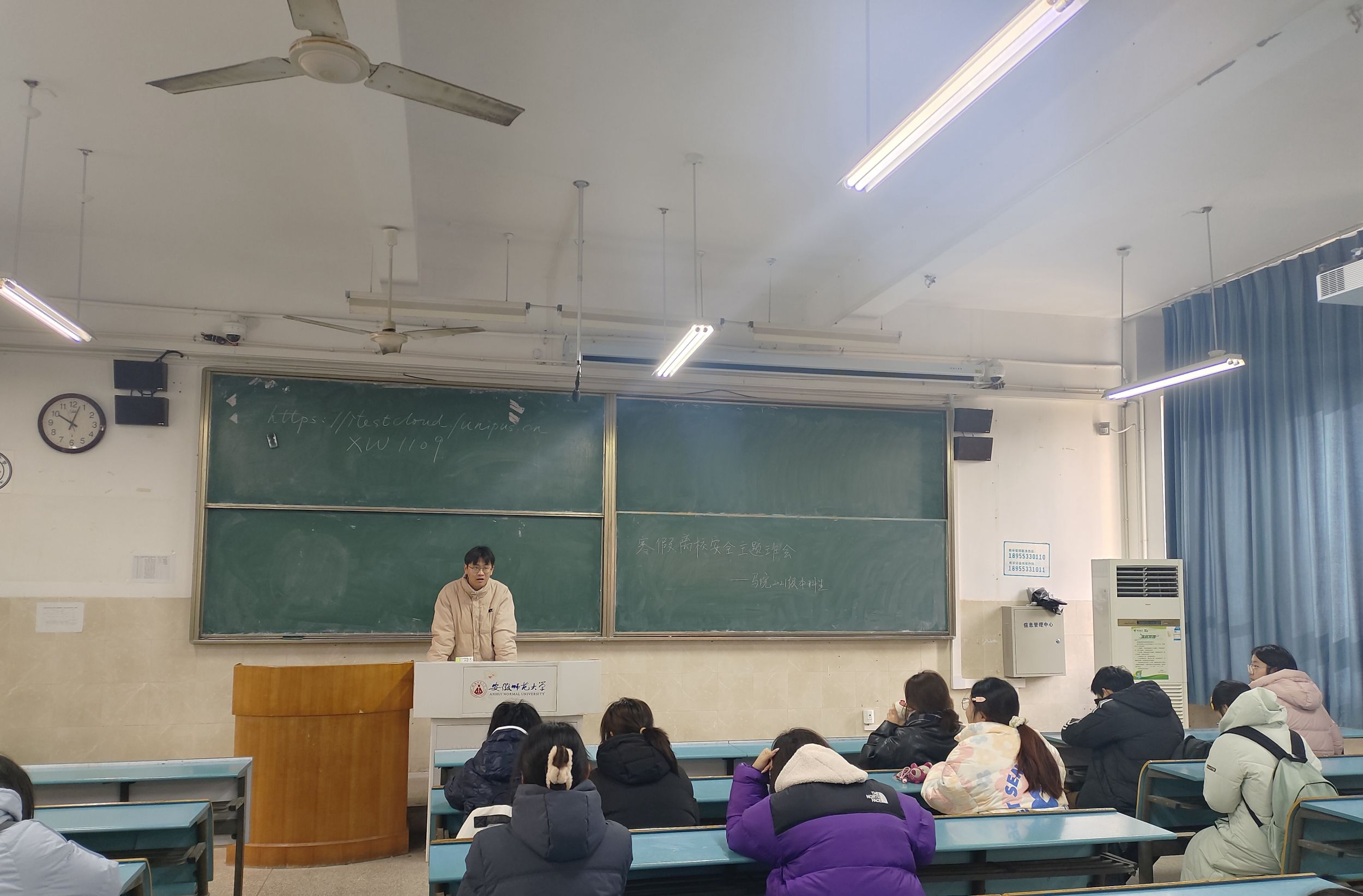 为提高同学们的安全防范意识与能力,保障员工能度过一个安全、平安、祥和的春节和寒假,1月4日至1月5日,公司2021级本科生在行知楼2010301教室召开寒假离校安全主题班会。会议由辅导员沈镇主持,2021级全体本科生参加。