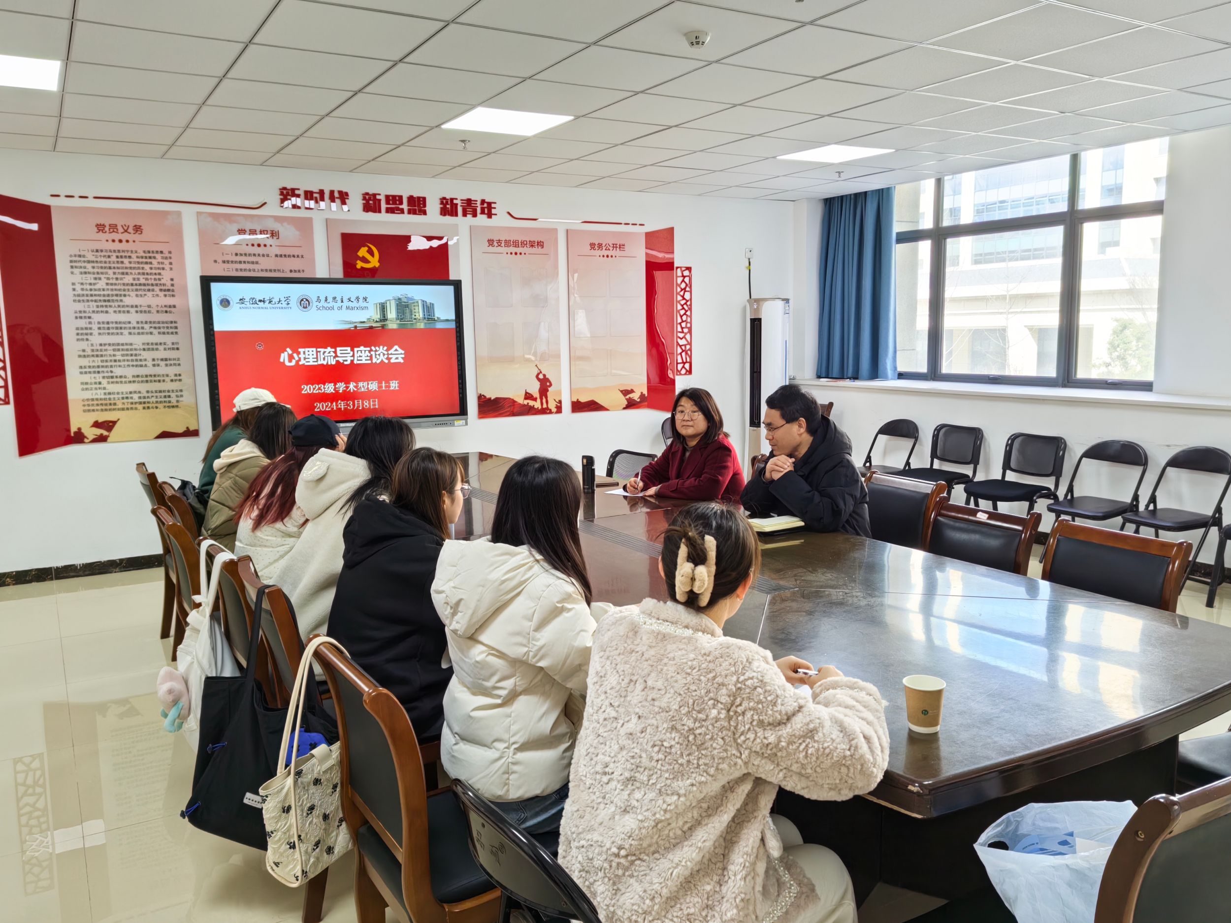 为进一步了解员工的思想动态和心理状态,增强员工心理品质,3月8日上午,beet3652023级学术型硕士研究生班于公司二楼G215会议室召开心理疏导座谈会,会议由公司教师、心理咨询师王玉侠老师主讲,辅导员周楠主持,部分员工参加。