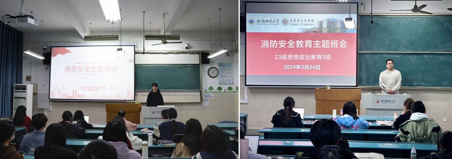 为了打造平安校园,进一步提高员工的消防安全意识和自防自救能力,2024年3月24日,beet365思想政治教育和马克思主义理论专业分别在2020104、2020202、2020203、2020204教室召开了有关消防安全知识主题的班会。班会由各班班长主持,班级安全委员开展,班级全体同学参加。