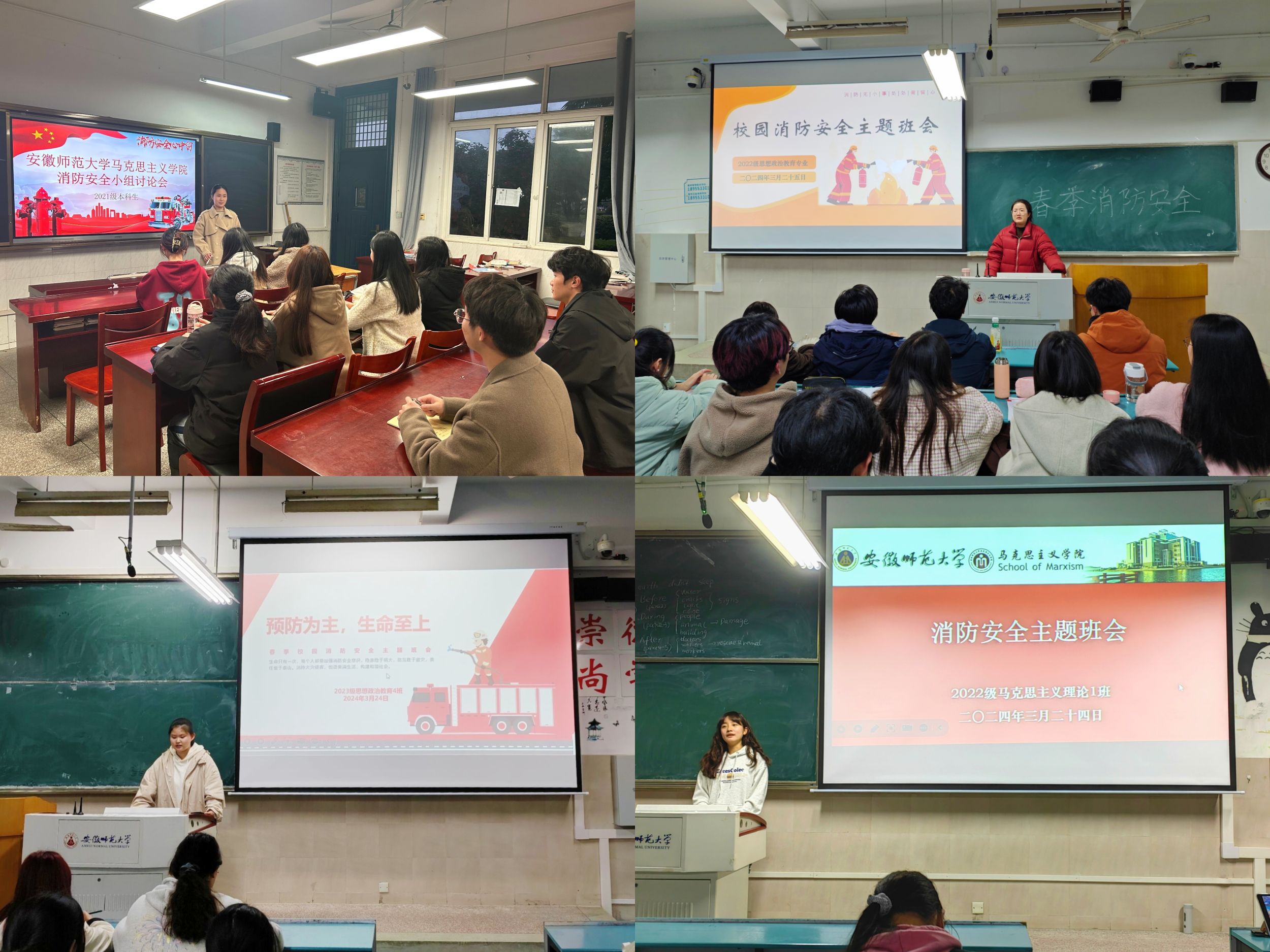 召开一次消防安全班会。各班级组织开展消防安全主题班会进一步夯实理论学习成果。在案例学习、情景模拟之中同学们增进对消防安全的理解。与此同时,同学们主动分享自己的收获,表示以后会将所学知识运用在实处。