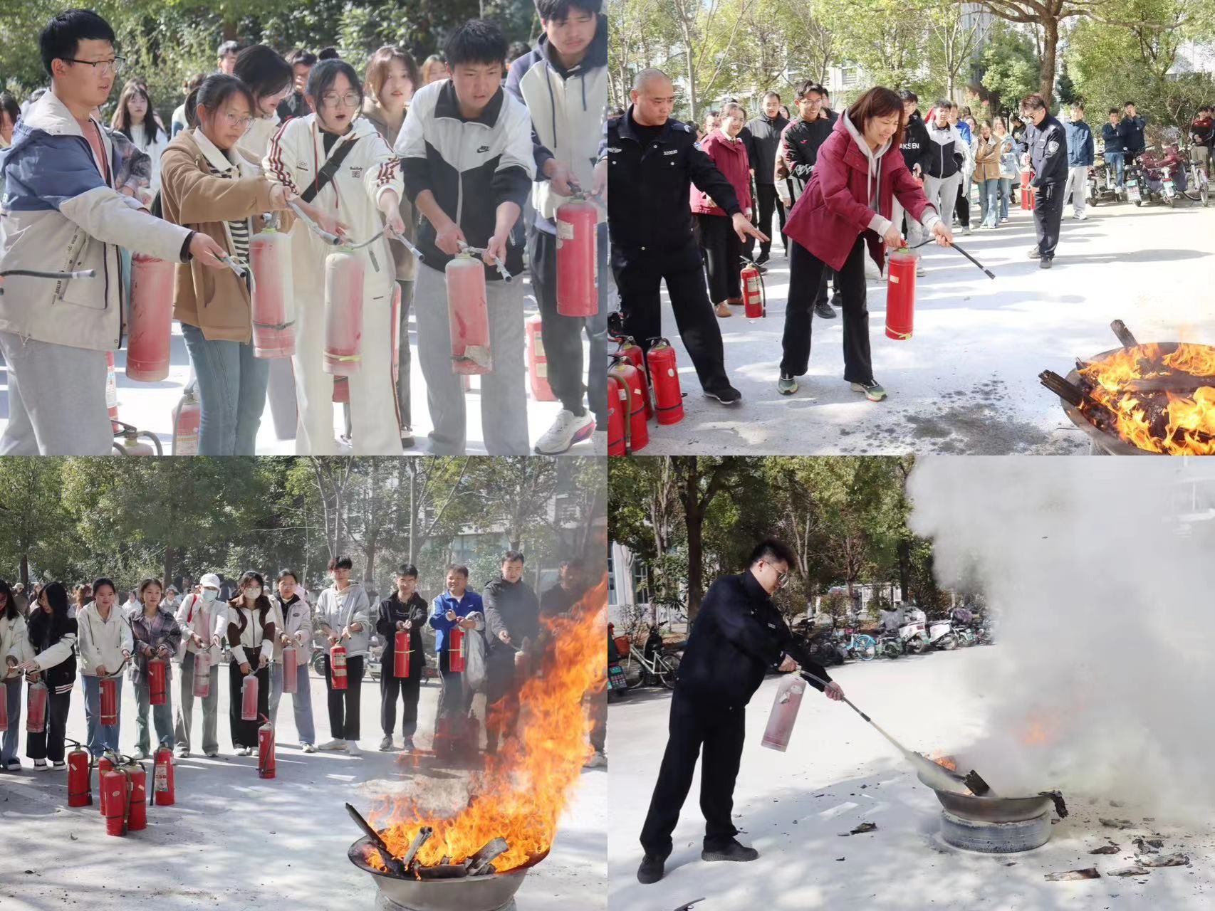 组织一次消防安全演练。3月20日,公司组织师生开展消防安全演练活动。保卫处孙栋、谢岸峰两位老师详细介绍了灭火器的作用原理和使用方法,师生们现场体验灭火器的正确使用方法。