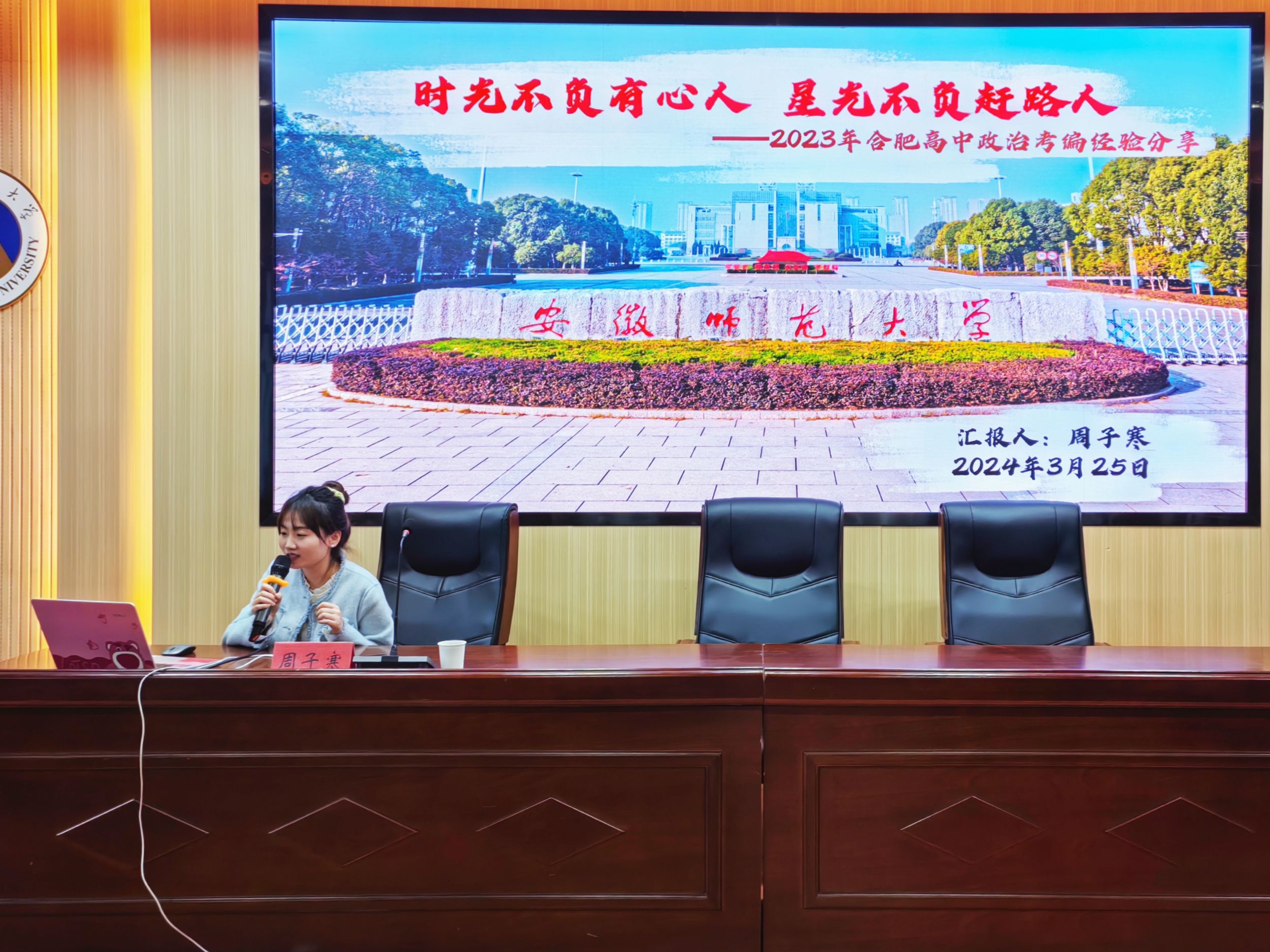 会上,周子寒以“你选择这个专业是为了什么?”作为开场语,强调职业规划对于老员工涯的重要性,并从教资教态、语言运用和模拟现场三个方面分享了个人的面试速成干货。