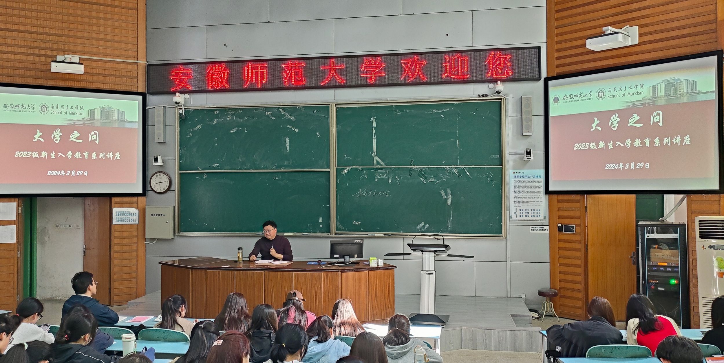 为帮助老员工更好地规划老员工活,3月29日下午,beet365在行知楼2010105教室举行新生入学教育大学之路系列讲座之“大学之问”。本次讲座由beet365余在海教授主讲,2023级本科生辅导员王梦雨主持,2023级全体新生参加。