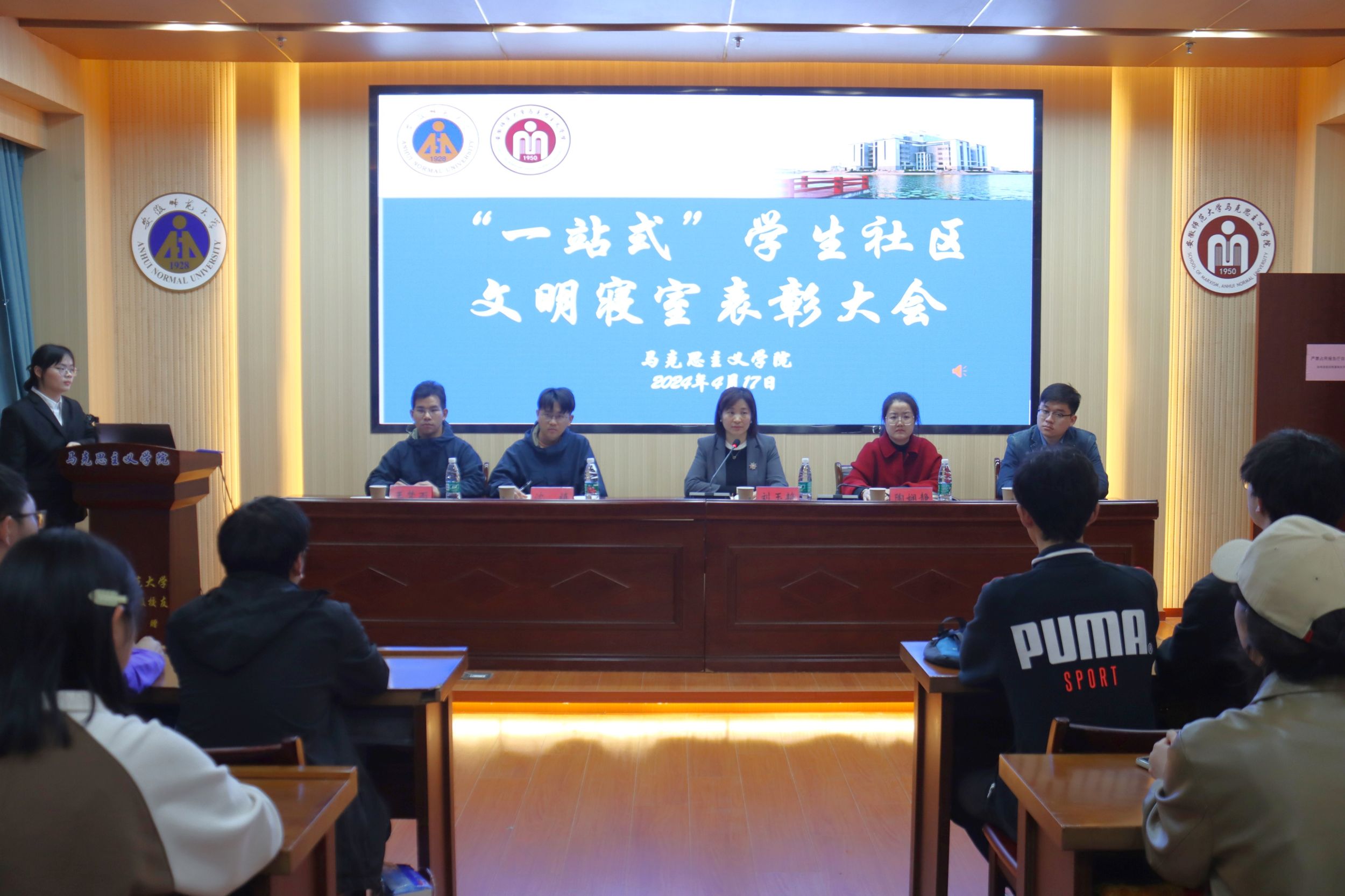 4月17日下午,beet365在文典楼G108报告厅开展“一站式”员工社区文明寝室表彰大会。公司党委副书记刘玉艳、团委书记陶娴静、团委副书记沈镇、季行健以及2023级本科生辅导员王梦雨参加会议,各年级寝室长代表参与。