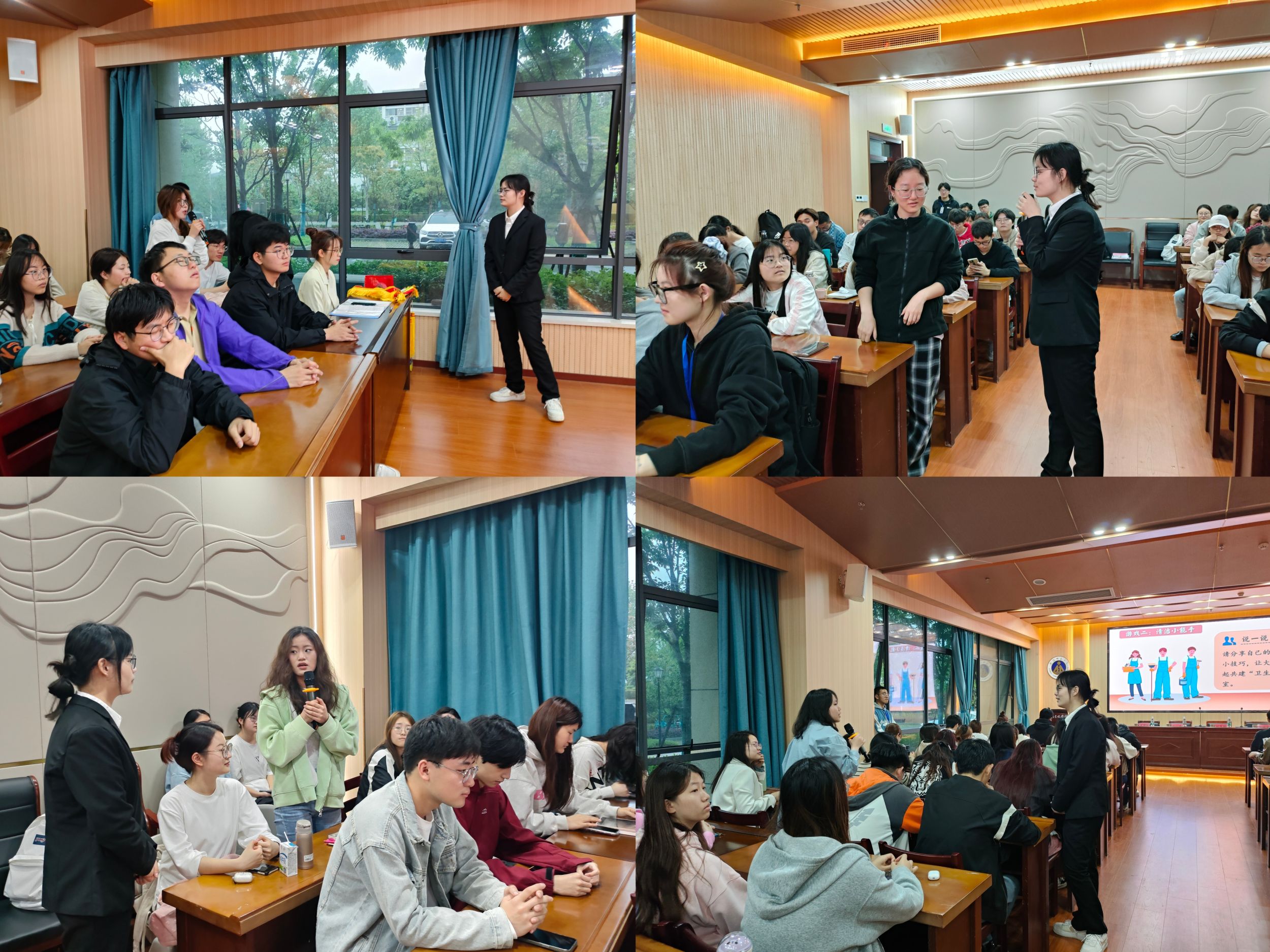 会后,各寝室长代表分享安全知识与清洁技巧,为营造干净整洁的寝室共同努力。