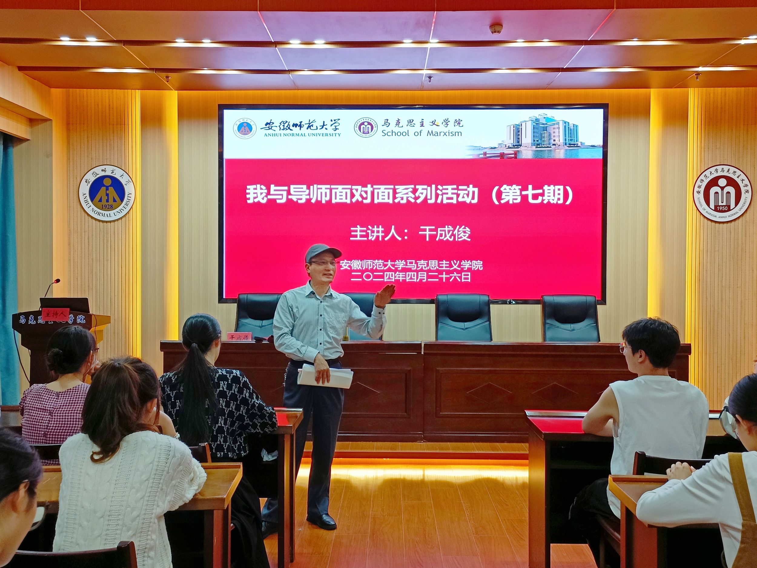4月26日晚,院研究生会在文典楼G108会议室开展“我与导师面对面”活动。活动邀请教授、博士生导师干成俊主讲,办公室委员孙岚主持本次会议。