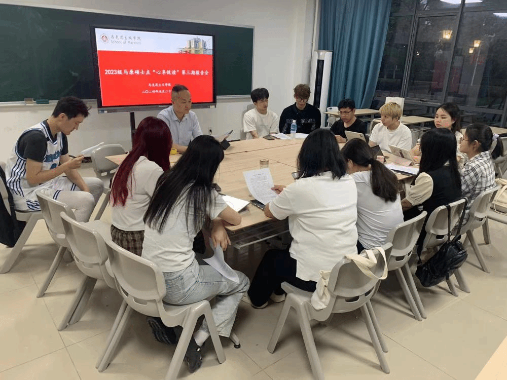5月22日晚上,公司2023级马克思主义基本原理专业硕士在文典楼1楼113教室举办“心享悦读”第三期读书报告会,beet365张涛老师应邀参加指导,2023级马克思主义基本原理专业研究生参加本次读书会。