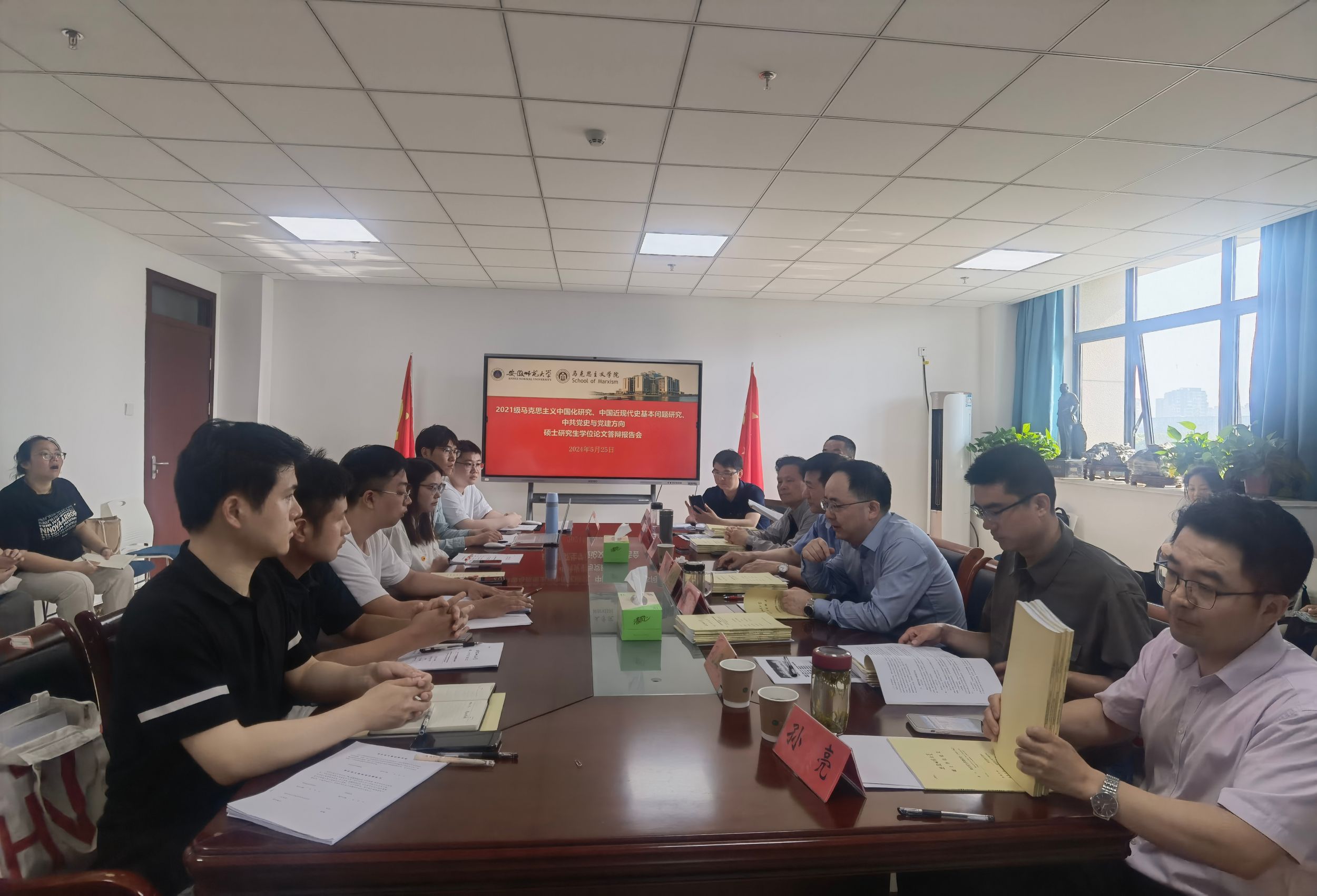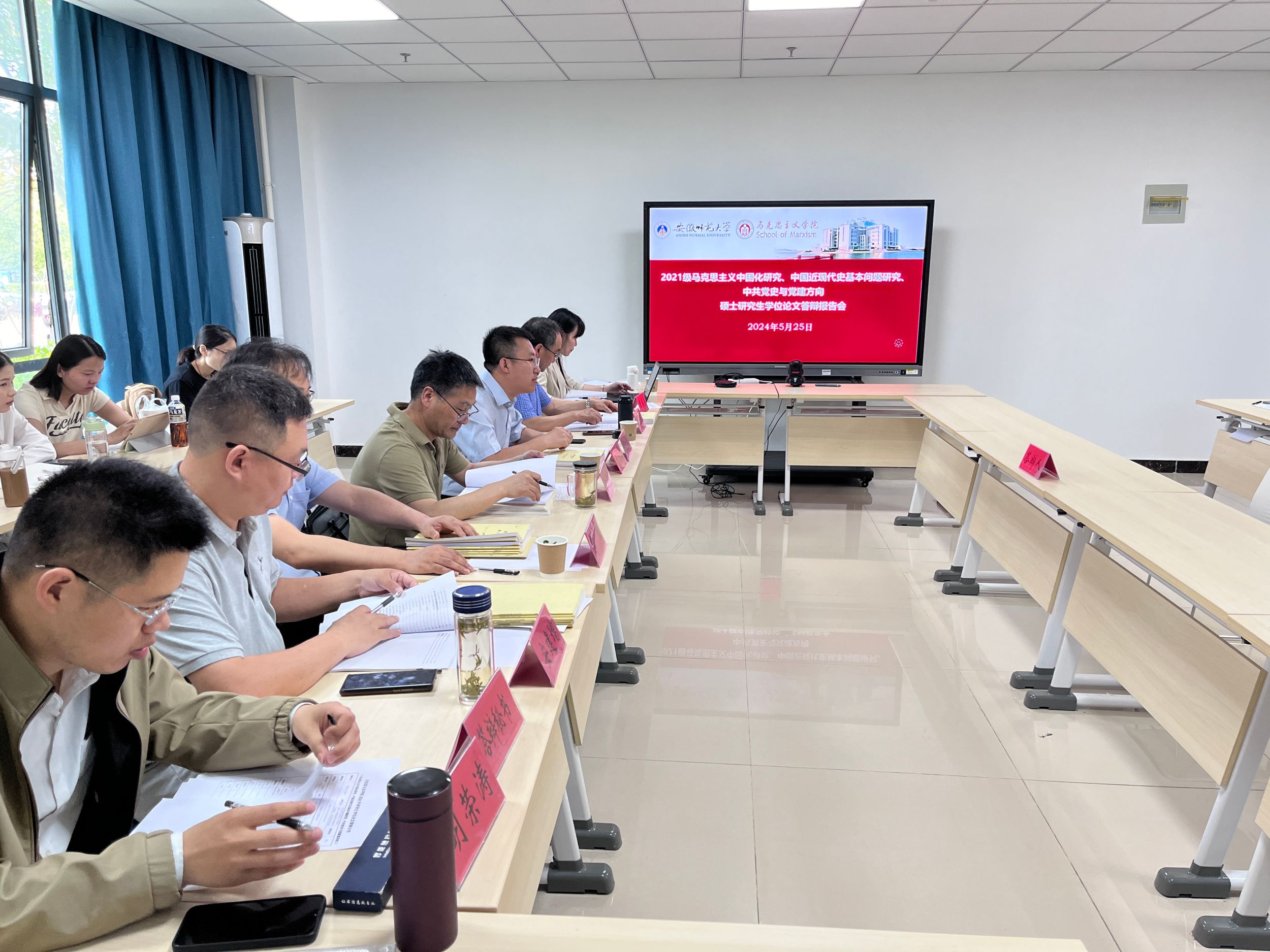 5月25日上午,2021级马克思主义中国化研究、中共党史与党建、中国近现代史基本问题研究方向硕士生毕业论文答辩会顺利举行。此次答辩会分四个小组,中共中央党校(国家行政公司)教授许耀桐、华东师范大学教授陈红娟、南京信息工程大学教授蒋明敏、北京师范大学教授刘洪森分别担任各小组答辩主席,三个学位点研究生导师担任答辩委员,2022级、2023级三个方向的研究生同学现场观摩学习。