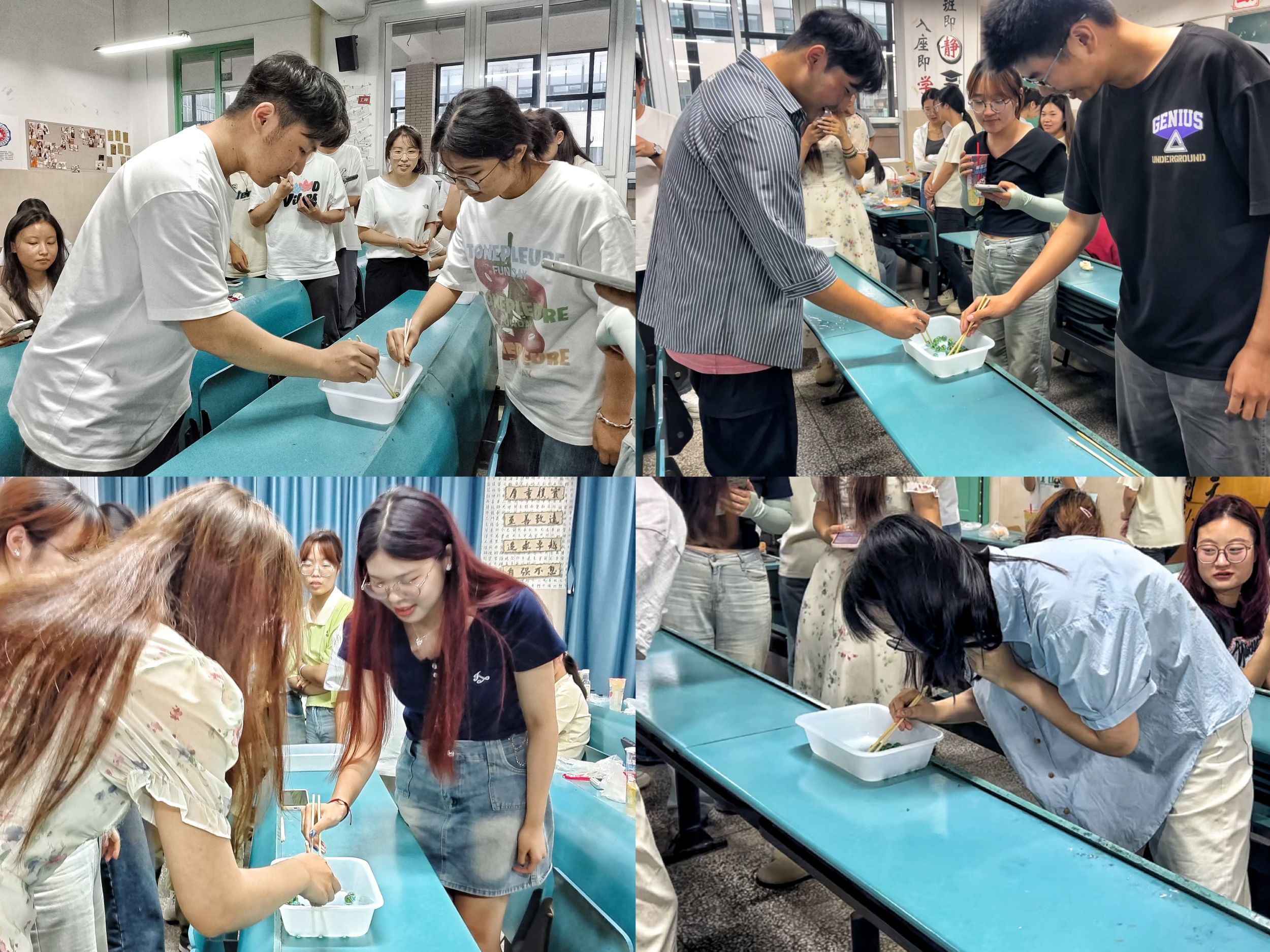 趣味夹珠,锻炼耐心。两两对抗,趣味夹珠。游戏过程中,大家集中注意力,将弹珠夹到自己的盘子中,现场充满欢声笑语。
