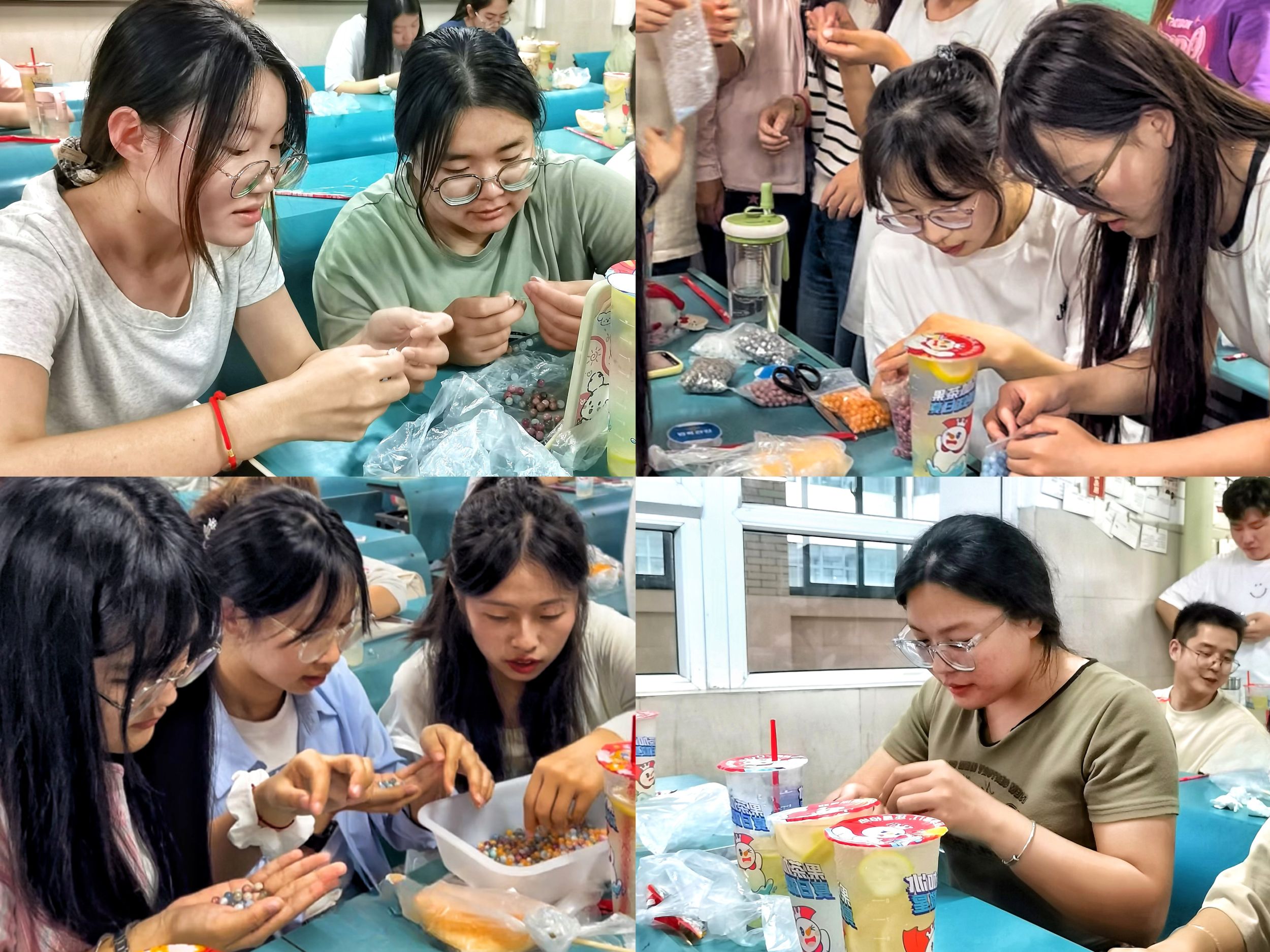 手工串珠,以物寄情。同学们将天然石珠串成手链,相互赠送,浓浓的情谊寄托在手工作品中,传递着爱与温暖。