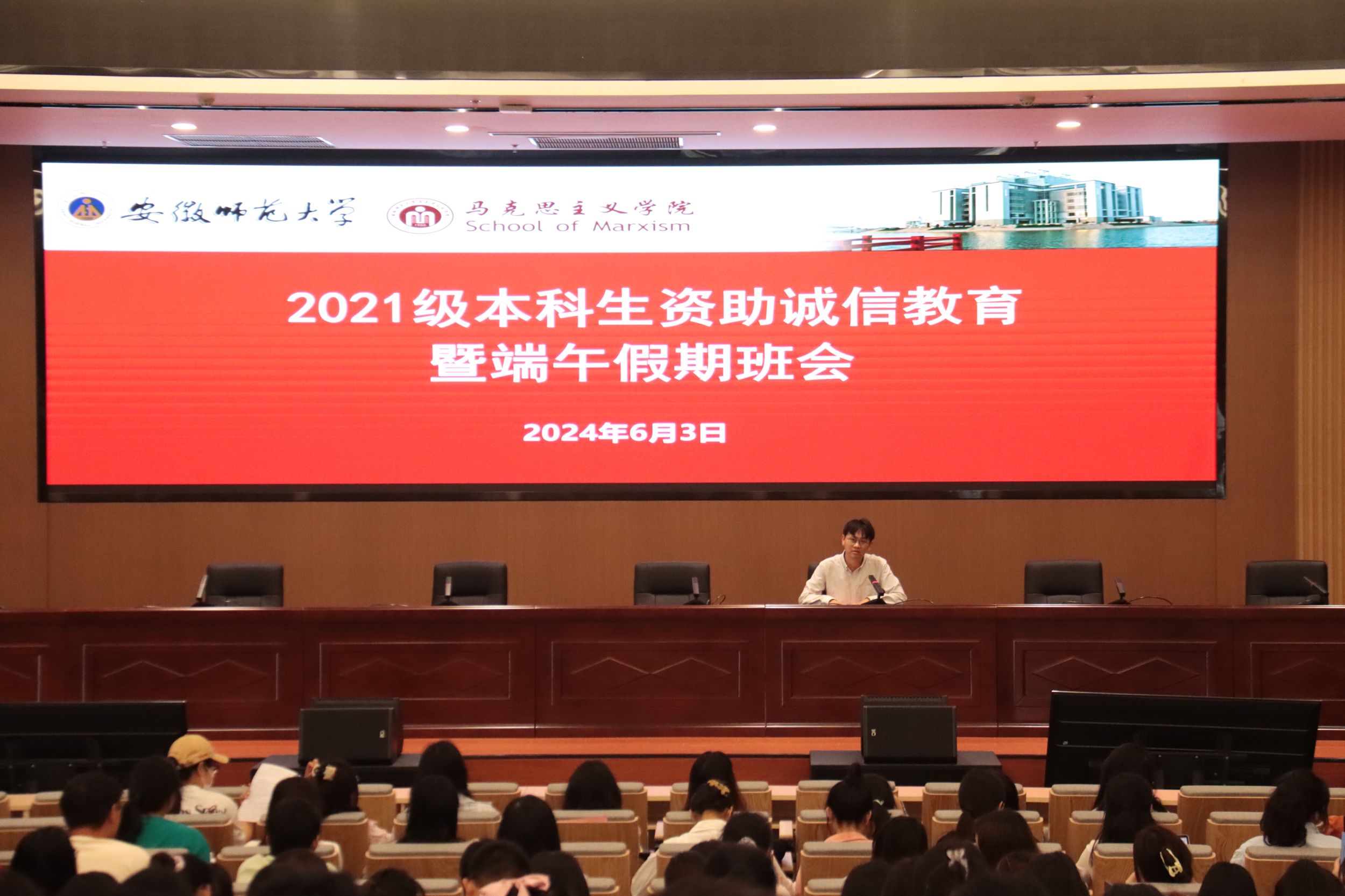 为加深公司员工对国家资助政策和助学贷款政策的了解,普及诚信及信用知识,引导员工进一步了解资助政策,6月3日,2021级本科生于文典楼西裙楼三楼报告厅召开资助诚信教育主题班会。会议由辅导员沈镇主持,2021级全体本科生参加。