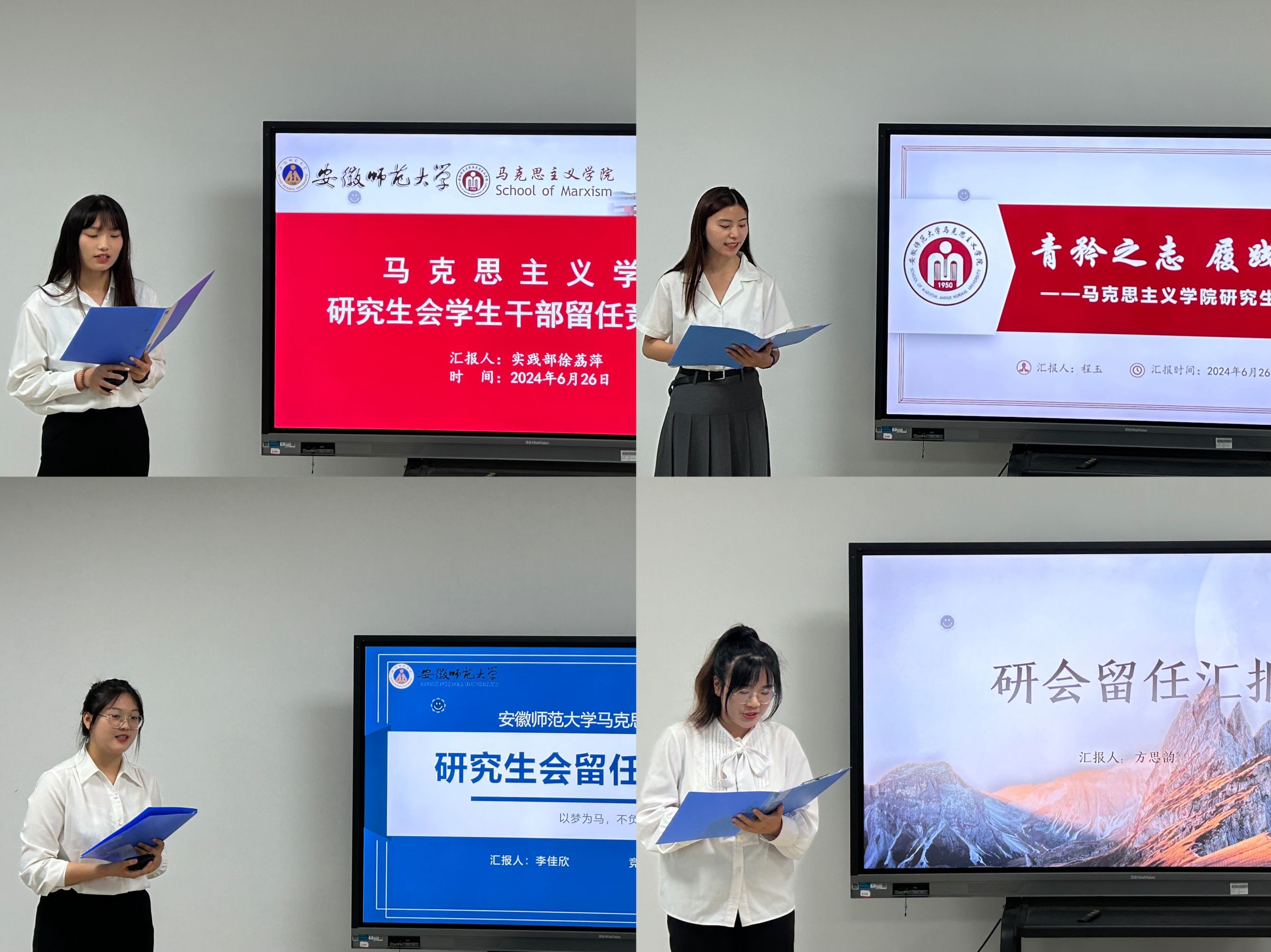 12位留任候选人围绕自我介绍、工作总结、竞聘优势、工作展望等方面依次上台进行竞选汇报,展现了作为研会成员的优秀风采。刘玉艳总结发言,她对上届主席团及部长们的工作表示了肯定,也对竞选留任的委员们表示了认可,同时指出了目前研究生会工作过程中需要改进的地方。最后,她鼓励同学们要做个踏实可靠的骨干,发挥带头作用,积极学习新事物,掌握新技能,在实践中不断成长。