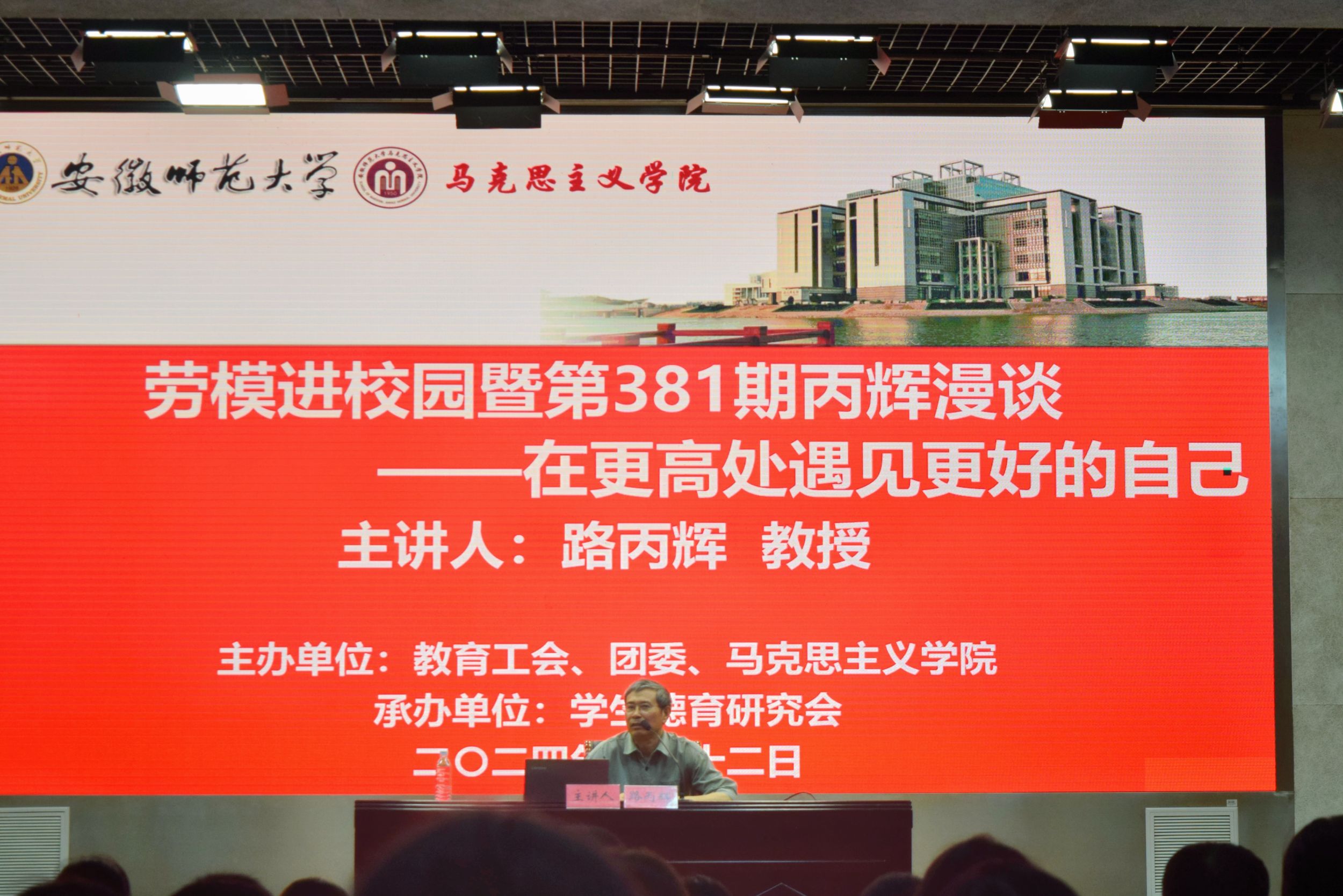 为深入学习贯彻党的二十届三中全会精神,弘扬劳模精神、劳动精神,引导广大新生牢固树立正确的人生观、价值观和劳动观,9月12日晚,党的二十大代表、全国教科文卫体工会系统“劳模工匠进校园 思政教师进园所”宣讲团讲师、beet365教授路丙辉在理科大楼报告厅为beet3652024级新生讲授“开学第一课”。此次活动由校工会、校团委、beet365共同主办,员工德育研究会承办。活动由beet365辅导员夏盼盼主持,2024级全体本科生及团学骨干成员聆听了讲座。
