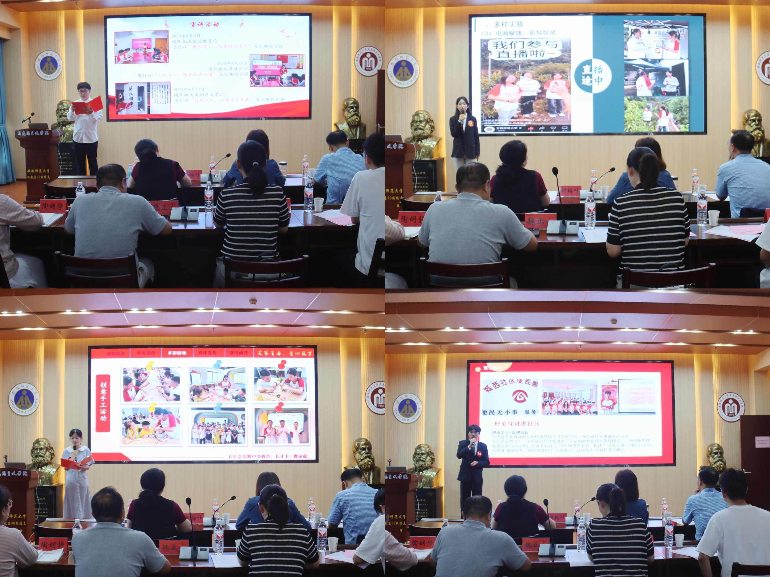 现场答辩的19支实践团队负责人通过生动鲜活的实践图片、情感真挚的实践纪实、引人入胜的实践视频,将他们在理论宣讲、实地调研、乡村振兴、教育帮扶等方面取得的实践成果进行全方面的展示,体现了实践团队实践形式的多样性和内容的丰富性。