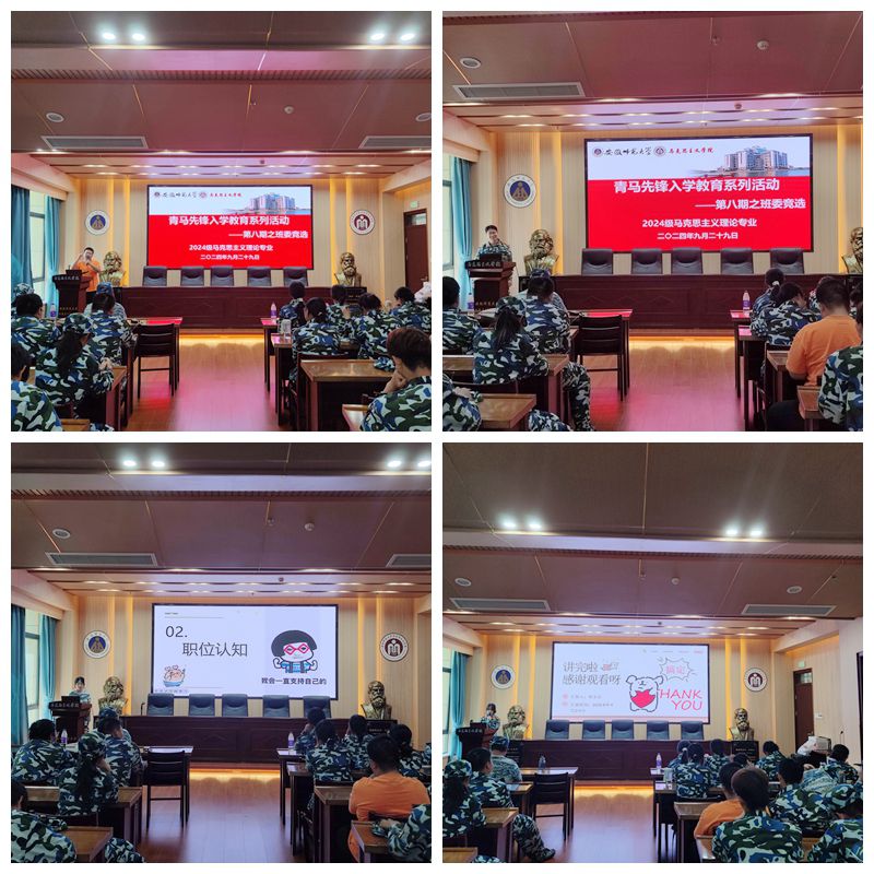 为进一步加强班级建设,提高班级凝聚力,9月29日上午,2024级马克思主义理论专业全体新生在文典楼G108报告厅举行班委竞选活动。本次竞选活动由辅导员夏盼盼主持,全体同学参加。
