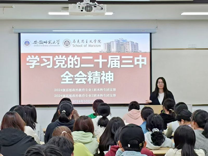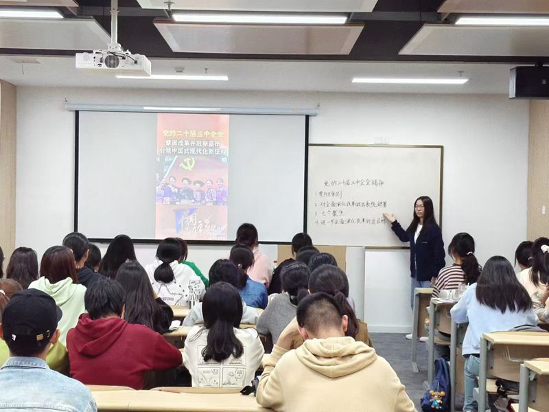 为一步学习宣传党的二十届三中全会,10月14日晚上,beet3652024级思想政治教育专业本科生团支部在望道楼209教室开展“学习贯彻党的二十届三中全会精神”主题团日活动。本次活动由叶成名主持,班级全体同学参加。