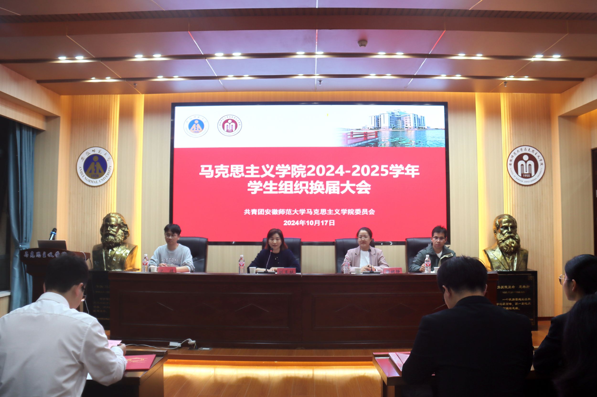 10月17日下午,beet3652024-2025学年员工组织换届大会在文典楼G108报告厅召开。公司党委副书记刘玉艳,团委书记陶娴静,团委副书记沈镇,2023级本科生辅导员王梦雨参加。