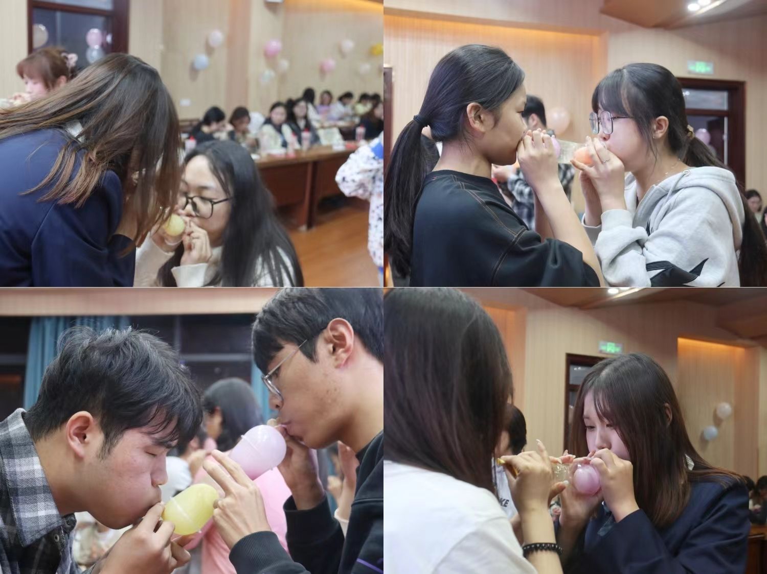 趣味游戏增默契。同学们组成六人小组,参与游戏纸杯传球和“害”你在心口难开,游戏过程中,同学们默契合作、斗智斗勇,发挥团队的力量赢得比赛。