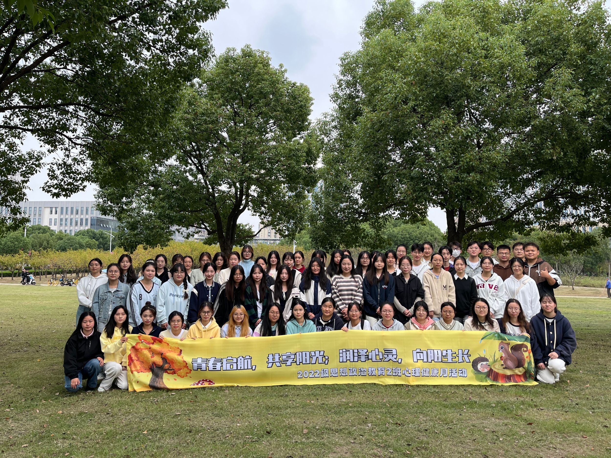 为进一步护航老员工健康成长,10月21日下午,2022级思想政治教育专业2班在津南大草坪开展“青春启航,向阳生长”心理健康主题活动。本次活动由心理委员汪怡晗主持,全体同学参与。