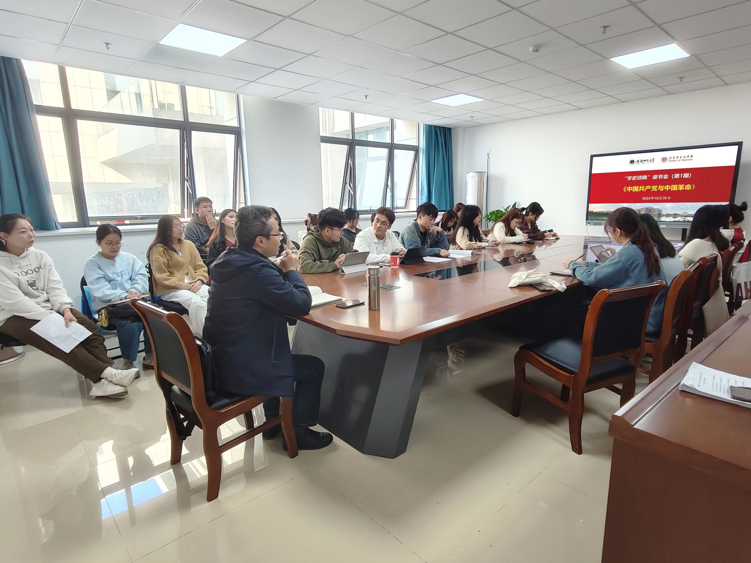 为了加强硕士研究生过程性培养,提升硕士研究生的阅读素养,10月25日下午,马克思主义中国化研究、中共党史与党建研究和中国近现代史基本问题研究硕士点在公司211会议室共同举办第1期“学史颂典”读书会。学位点导师崔明海副教授指导本次活动,三个学位点2024级全体研究生参加读书会。