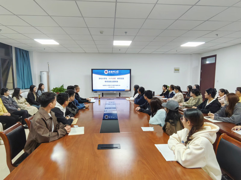 10月28日晚上,2023级学术型硕士研究生班在文典楼G209召开深化老员工“六个文明”教育实践专项活动主题班会。本次班会由辅导员李俊峰主讲,班级全体班委和寝室长参加。