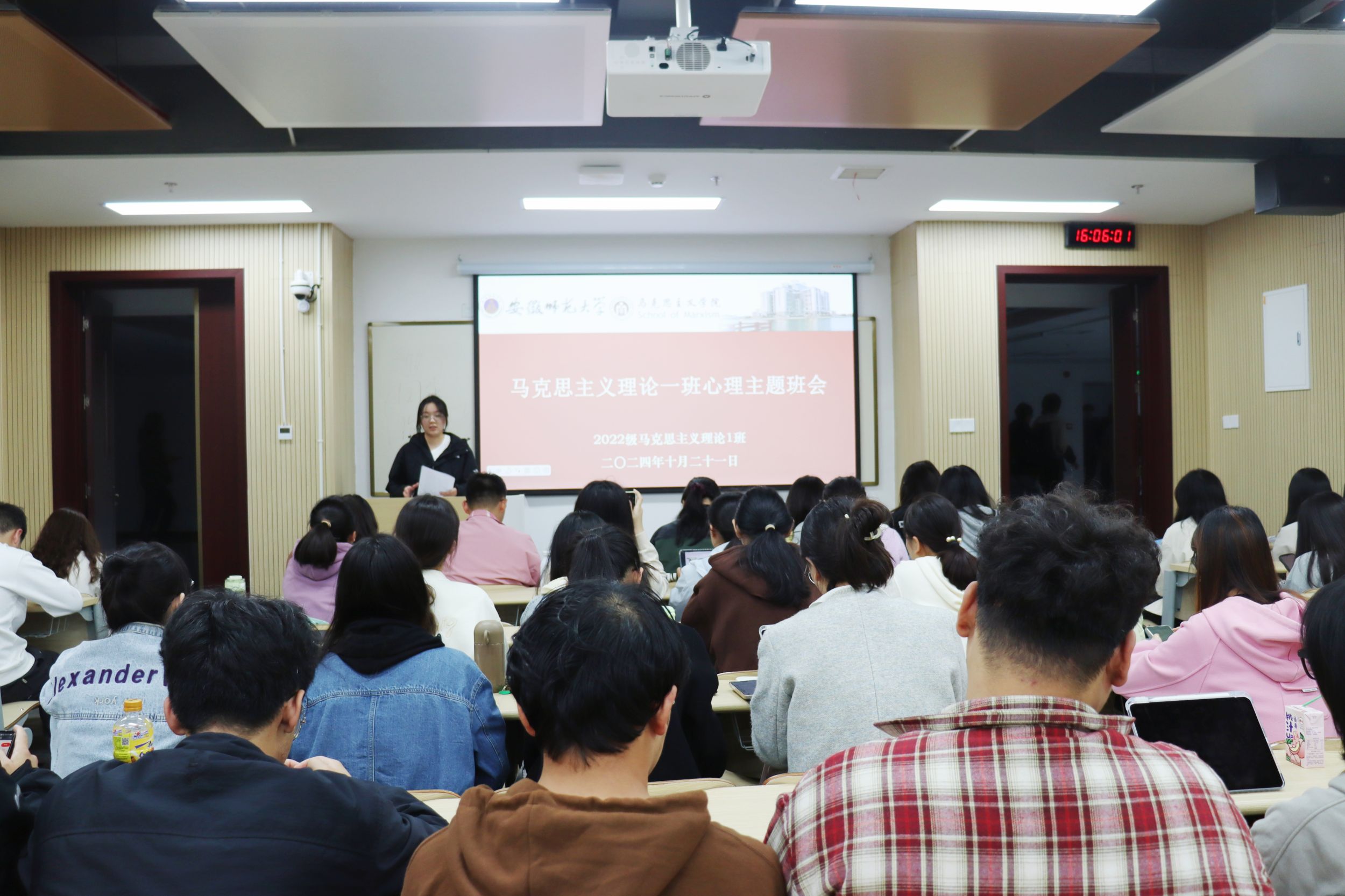 主题班会,心沐欢乐阳光。10月21日下午,心理委员王若冰在望道楼E204教室召开心理健康主题班会,向同学们讲述常见心理健康问题及有效的疏导方法,鼓励同学们争做积极乐观、健康向上的新时代老员工。