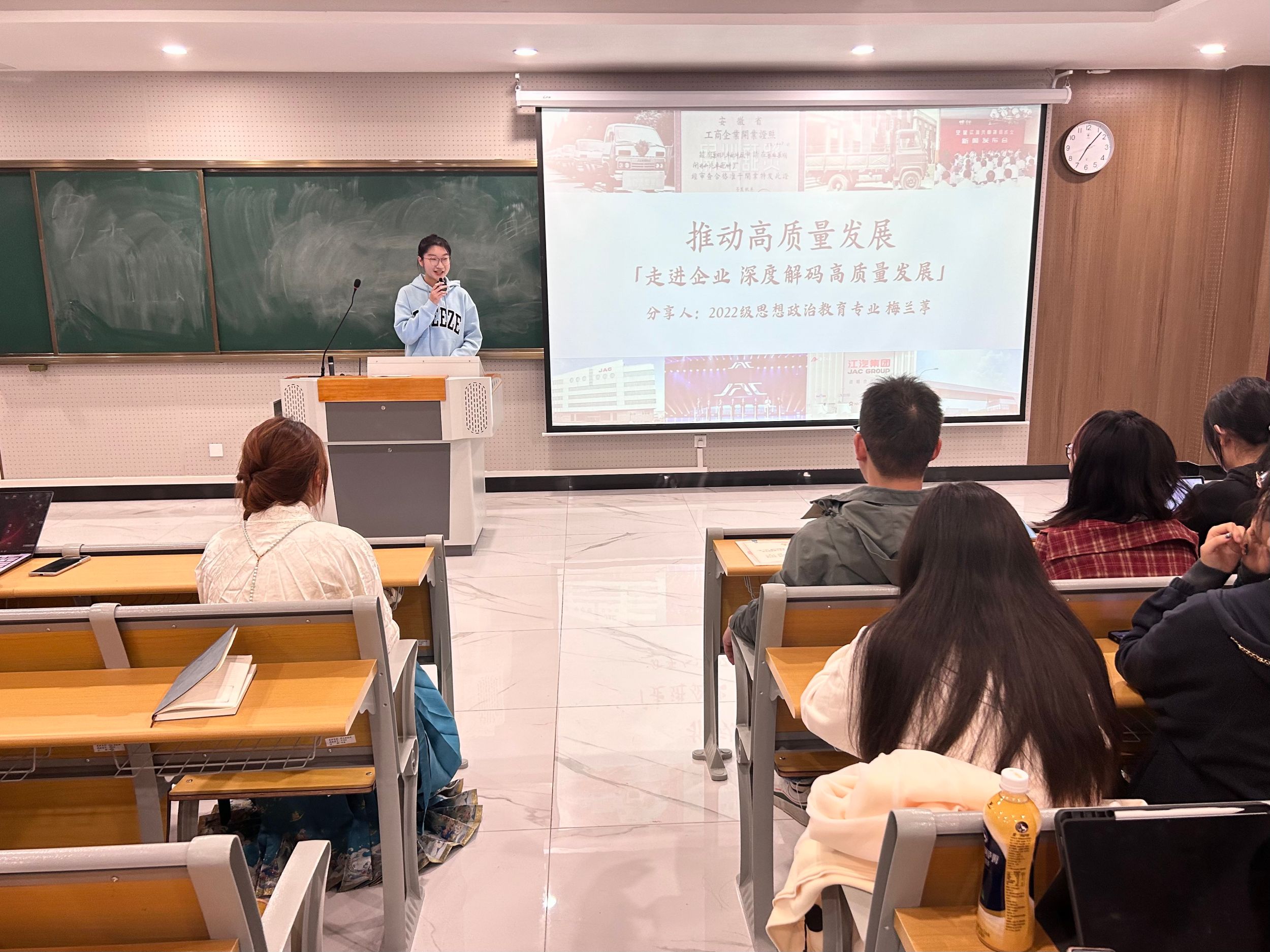 为帮助2023级本科生更好地夯实师范生基础,锤炼师范生技能,11月4日晚,2023级本科生在清源楼C307教室开展“青春有约”之师范生技能示范分享会。会议由2023级本科生辅导员王梦雨主持,邀请了2022级思想政治教育专业梅兰葶主讲,2023级思想政治教育专业员工全体参加。