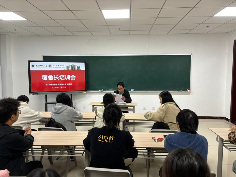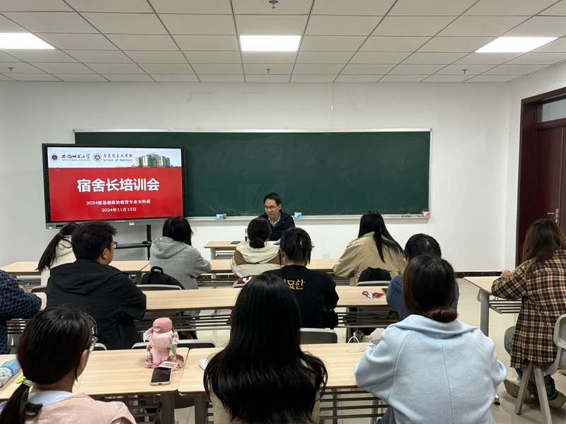 为进一步加强宿舍管理,营造良好宿舍环境,11月15日下午,辅导员周楠在文典楼G112教室召开了面向2024级思想政治教育专业全体宿舍长的培训活动。