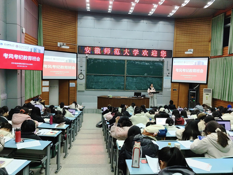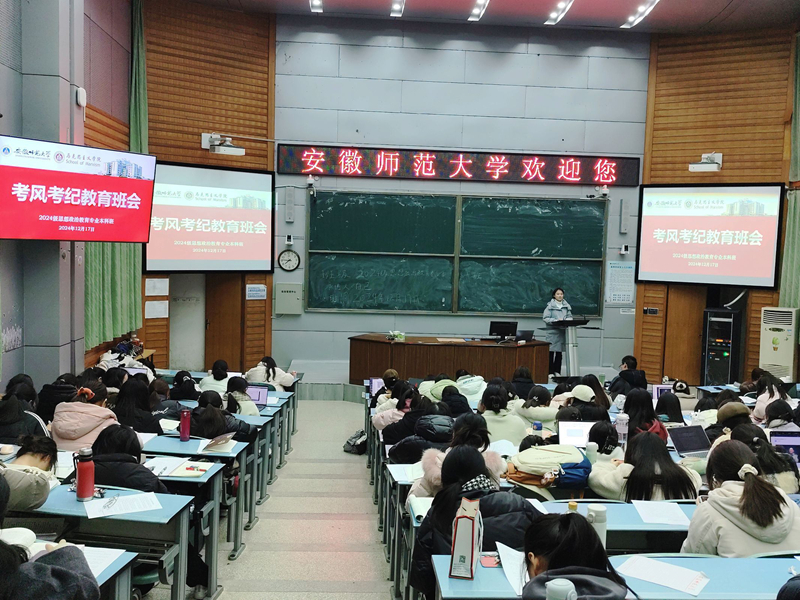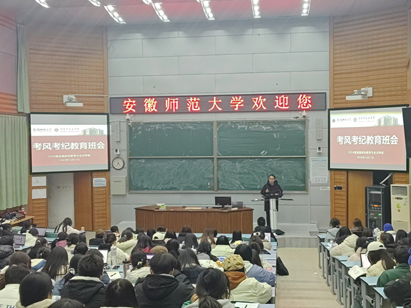 12月17日晚,beet3652024级思想政治教育专业本科班在行知楼2010105教室开展考风考纪教育班会。班会由辅导员周楠主持,全体同学参加。
