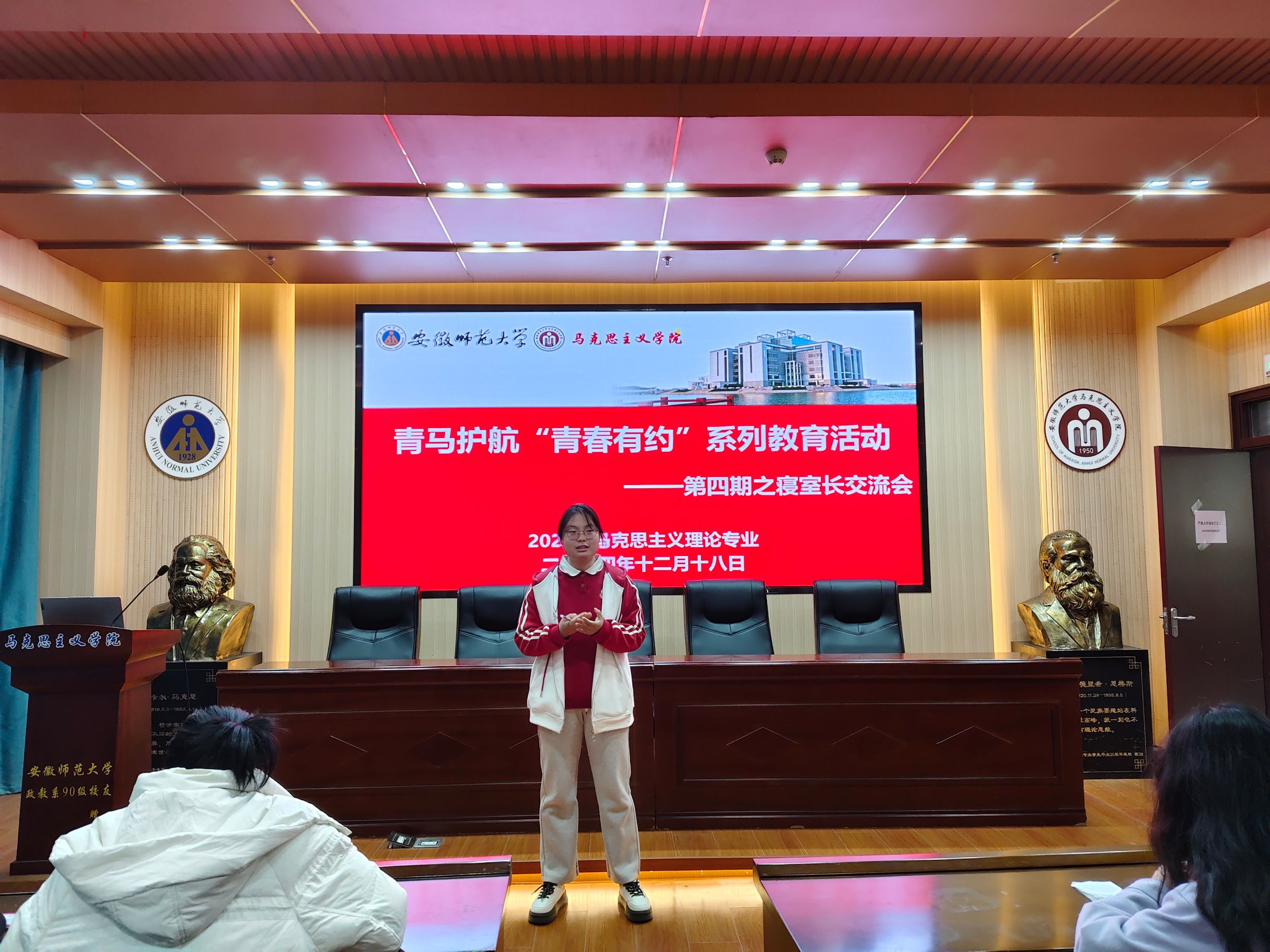 为进一步加强员工宿舍管理,营造安全、文明、和谐的住宿环境,12月18日下午,2024级马克思主义理论专业在公司G108报告厅召开了寝室长交流会。此次活动由生活委员潘萌主持,辅导员夏盼盼老师以及2024级马克思主义理论专业全体同学参加。