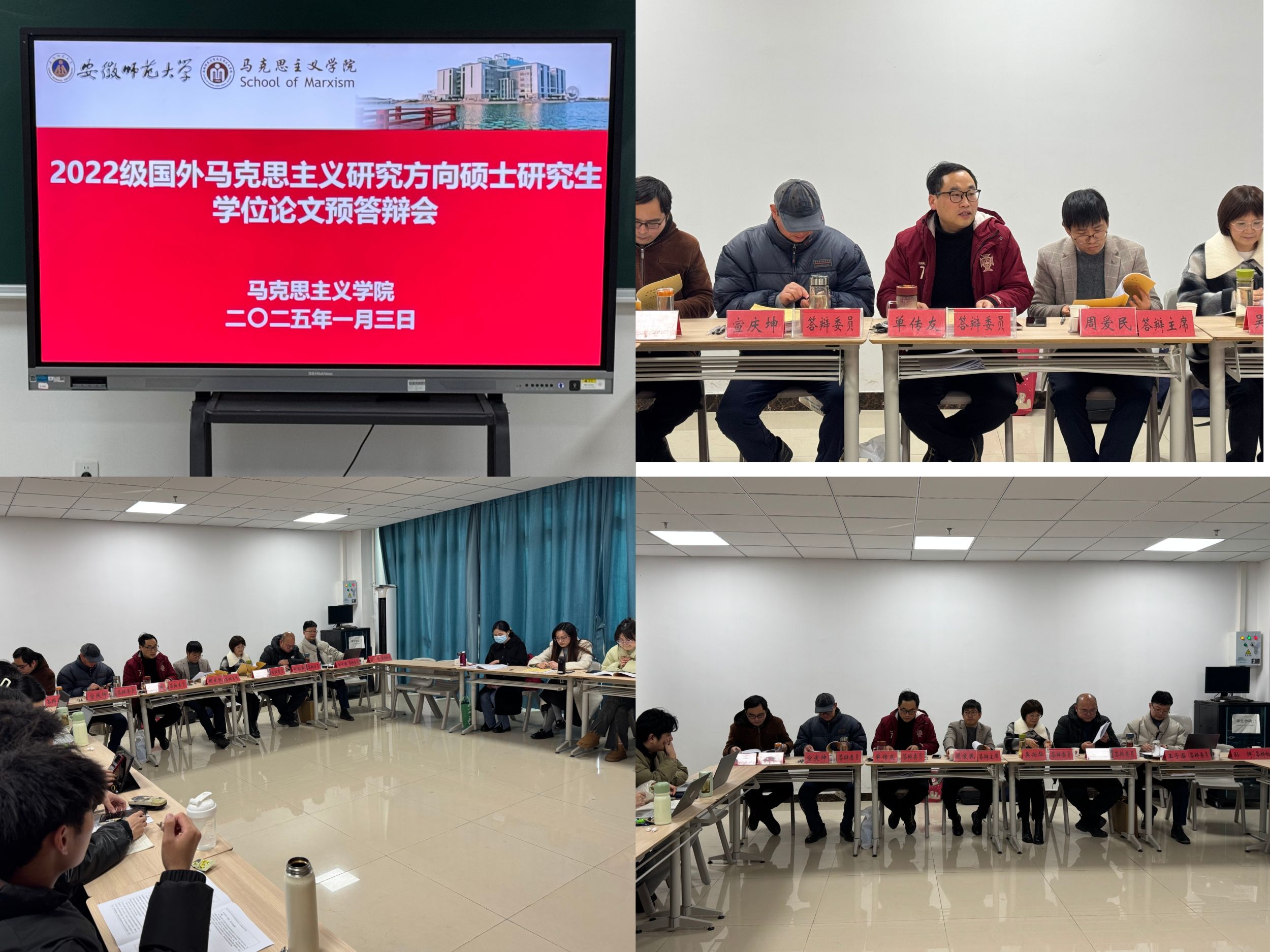 1月3日下午,公司2022级国外马克思主义研究方向硕士研究生学位论文预答辩会,在公司一楼G109教室进行。同济大学beet365博士生导师周爱民副教授担任答辩主席,学位点导师单传友教授、吴兴华教授、陈旭东副教授、王子廓副教授、宣庆坤副教授、张添翼副教授担任答辩委员,孙辉博士担任答辩秘书。本学位点2022级、2024级硕士研究生全程观摩学习。