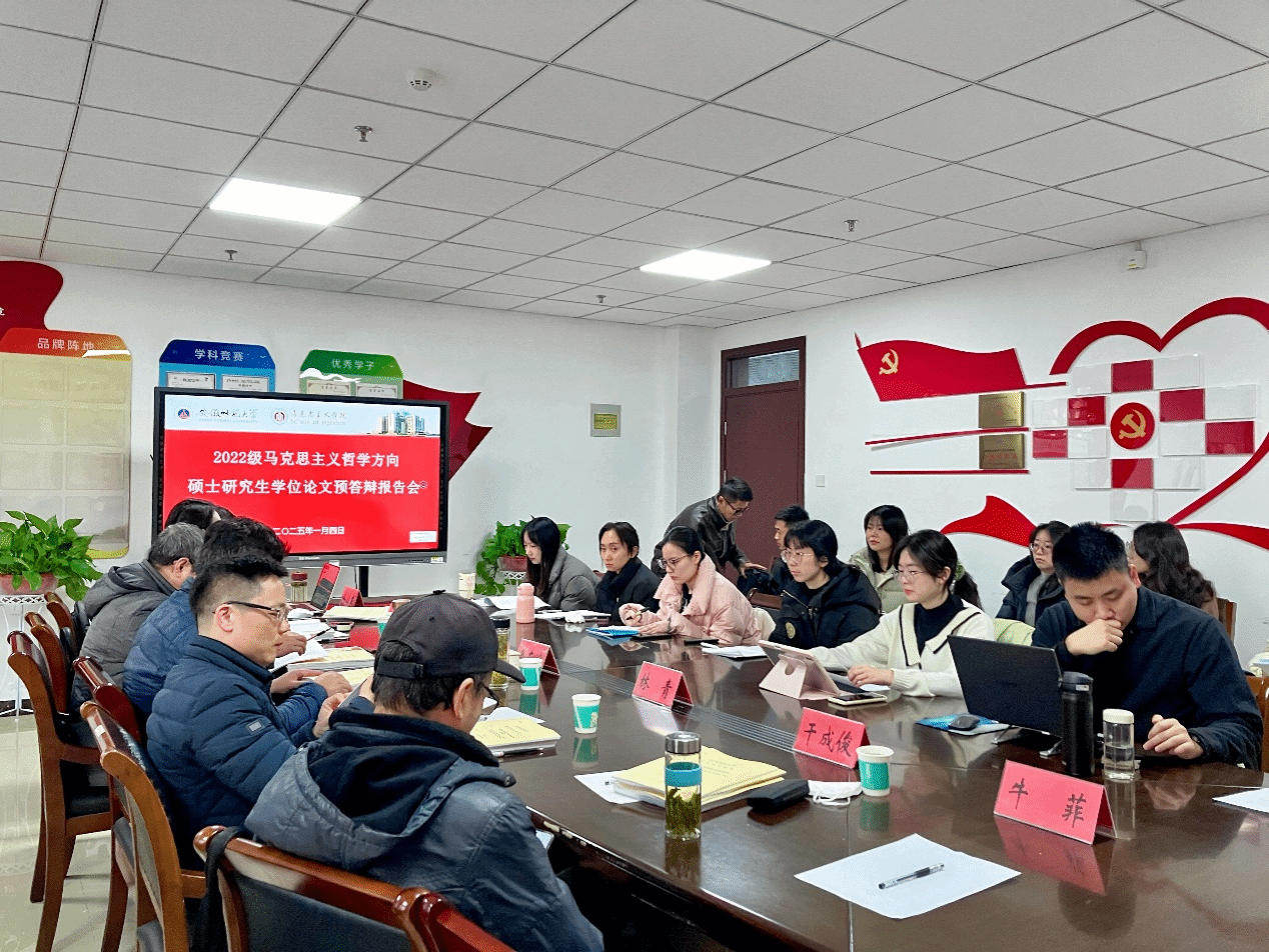2025年1月4日上午,马克思主义哲学硕士点2022级学位论文预答辩会和2023级学位论文开题报告会在文典楼G215会议室举行。复旦大学beet365博士生导师林青教授担任预答辩委员会主席、开题审核组组长,马克思主义哲学硕士点导师彭启福教授、干成俊教授、余在海教授、单传友教授、胡梅叶副教授、牛菲副教授担任预答辩委员会委员、开题审核组成员,孙辉老师担任秘书。马克思主义哲学专业2024级硕士生全程观摩学习。