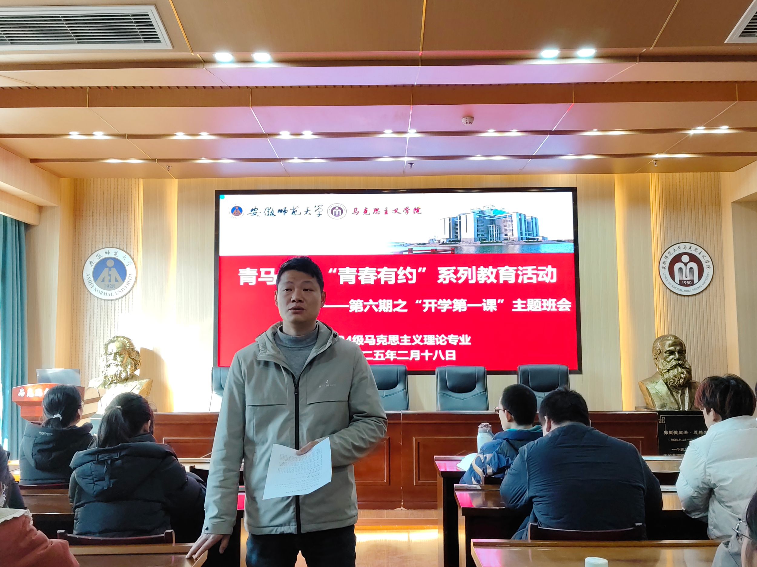 新学期新气象,为帮助同学们迅速调整状态,以饱满的热情开启新学期征程,2月18日上午,2024级马克思主义理论专业本科生在公司楼G108召开了“开学第一课”主题班会。本次班会由辅导员夏盼盼老师主讲,2024级马克思主义理论专业全体同学参加。