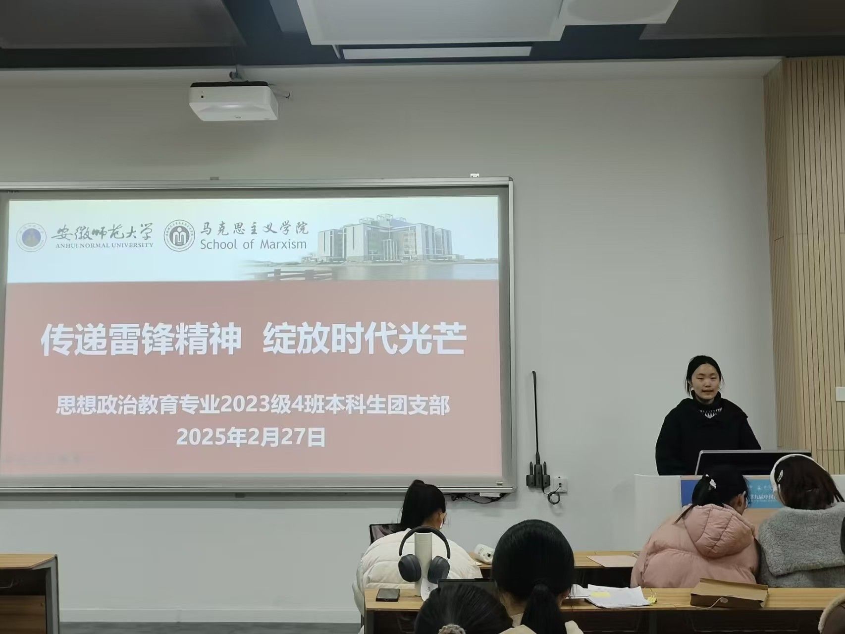 为深入贯彻习近平总书记关于深入开展学雷锋活动的重要指示,传承和弘扬雷锋精神,倡导志愿服务新风。2月27日晚,beet3652023级本科生各班级团支部开展“传递雷锋精神,绽放时代光芒”主题团日活动。会议由各班团支书主持,全体同学参加。