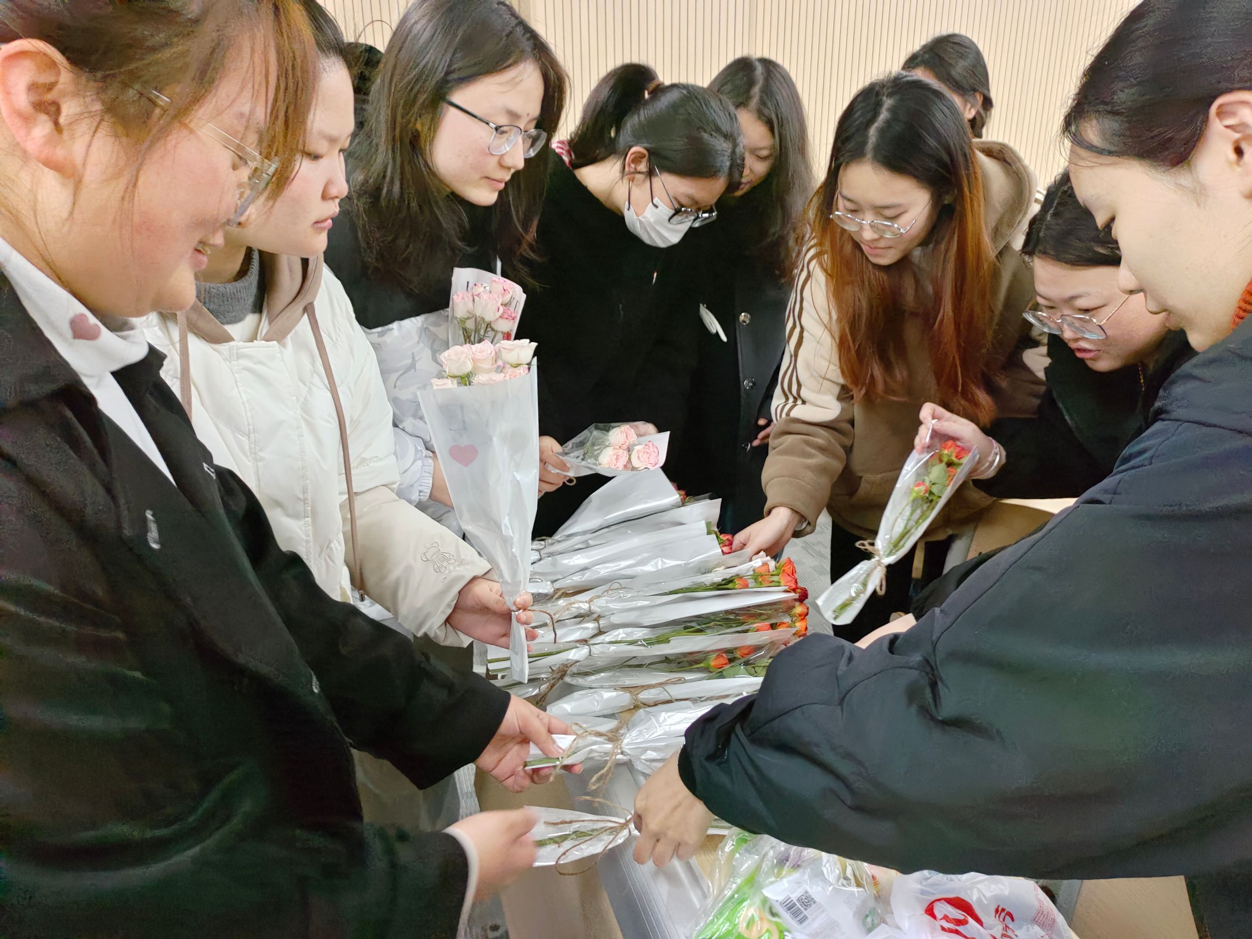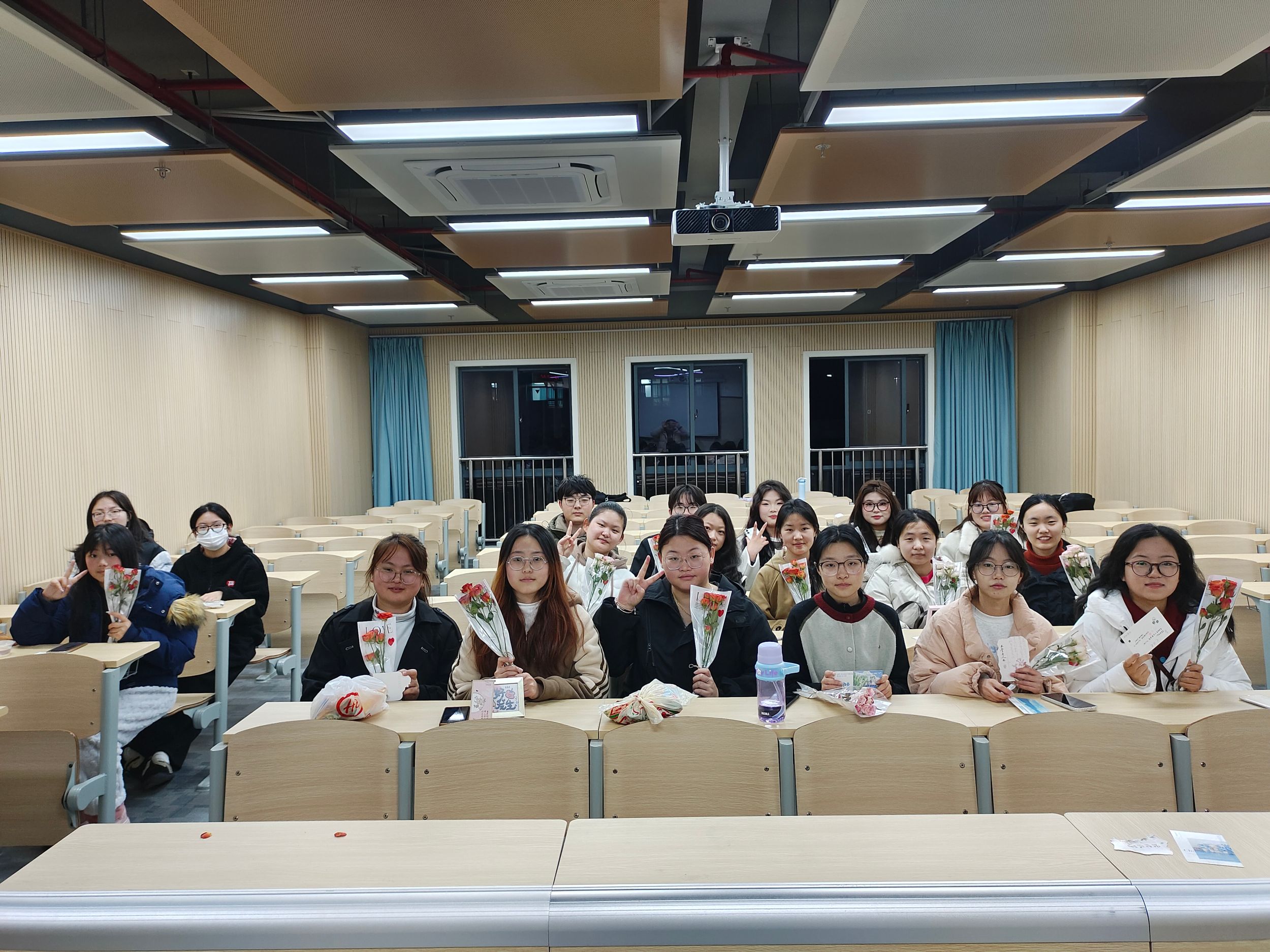 本次活动以创意互动打破传统节日形式,为全体女生定制专属仪式感,让春日的温暖在同窗指尖流转。首先,在杨孟然“愿你成为自己的追光者”的祝福声中,22张明信传递至每位同学手中,同学们认真写下对自己的祝福。随后,杨孟然将鲜花送到每位同学的手上,并诚挚地祝福她们节日快乐。活动最后,采用刮刮乐的创意,在同学们的期待下,刮出属于她们的小礼物。