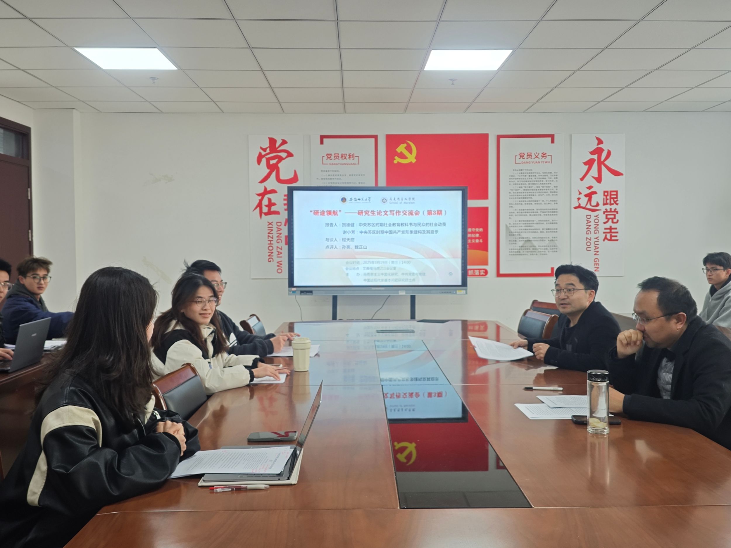 3月19日下午,为了提高研究生的学术研究能力,解答同学们在论文写作过程中遇到的各种难题和困惑,马克思主义中国化研究、中共党史与党建、中国近现代史基本问题研究三个方向硕士点在文典楼G211教室共同举办第3期“研途领航”——研究生论文写作研讨会。此次研讨会邀请了孙亮老师、魏正山老师担任点评人,2022级硕士研究生程天甜担任与谈人,学位点2023级、2024级部分硕士研究生参加。