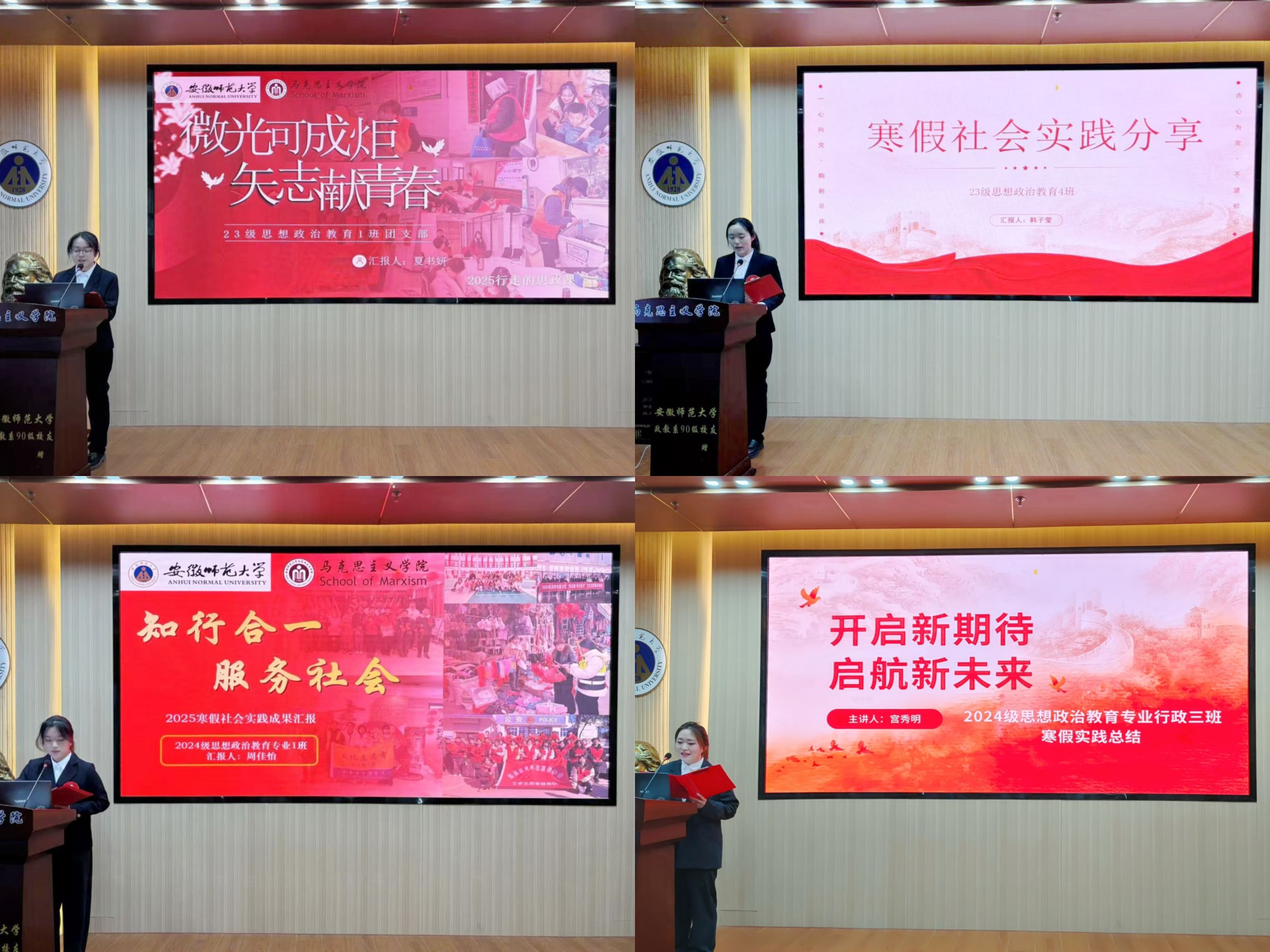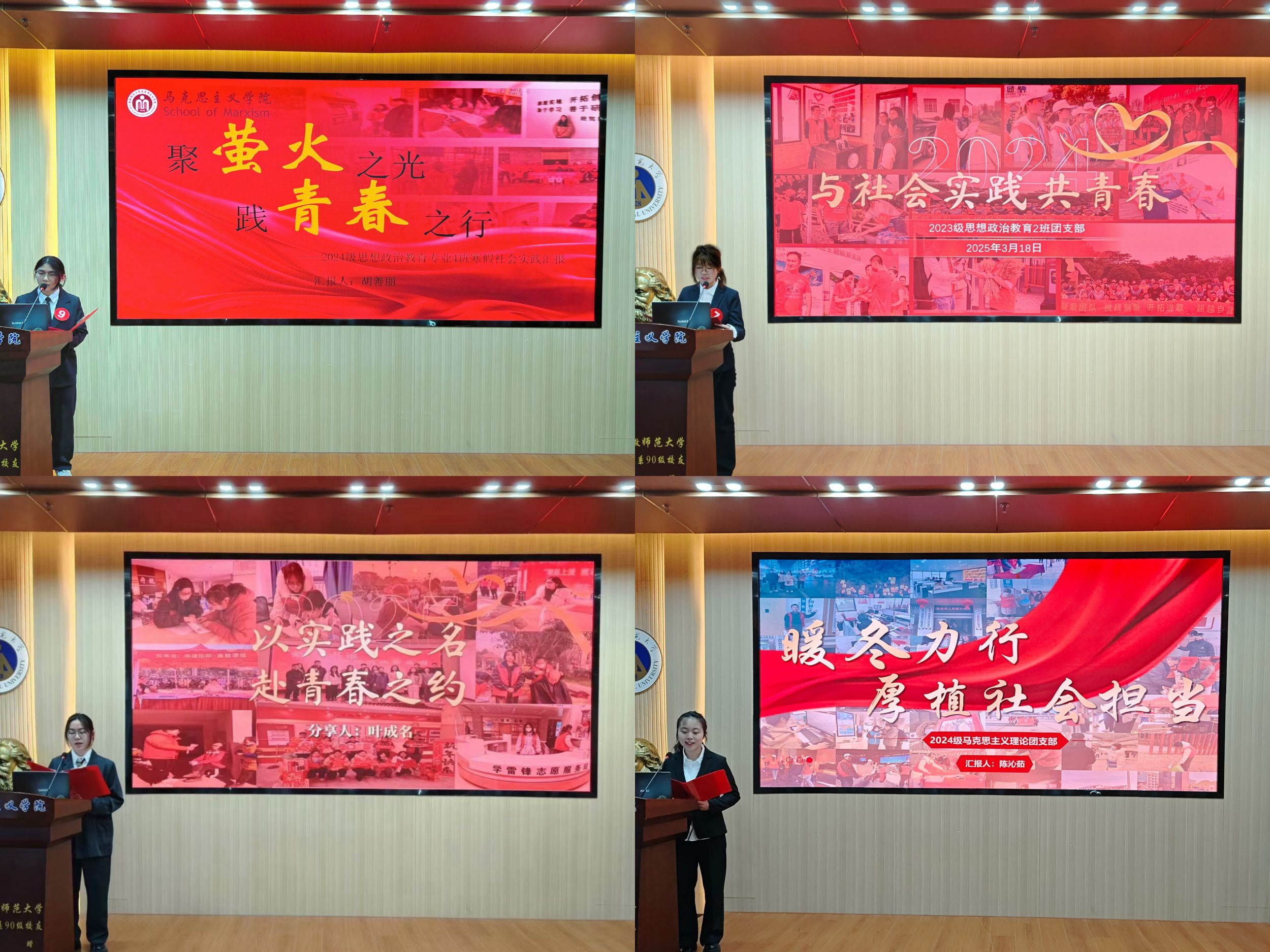 成果分享环节,各班员工代表依次上台,分别从活动准备、开展过程、取得成果和社会影响等方面进行详细汇报。实践过程中,学子们讲述红色故事,参与“青马徽声”理论宣讲;探索乡村产业发展,助力乡村振兴大业;投身公益行动,书写奉献篇章。从文学创作到社区实习,从文化传承到创新创业,丰富多彩的实践内容,彰显beet365学子责任担当和青春活力。