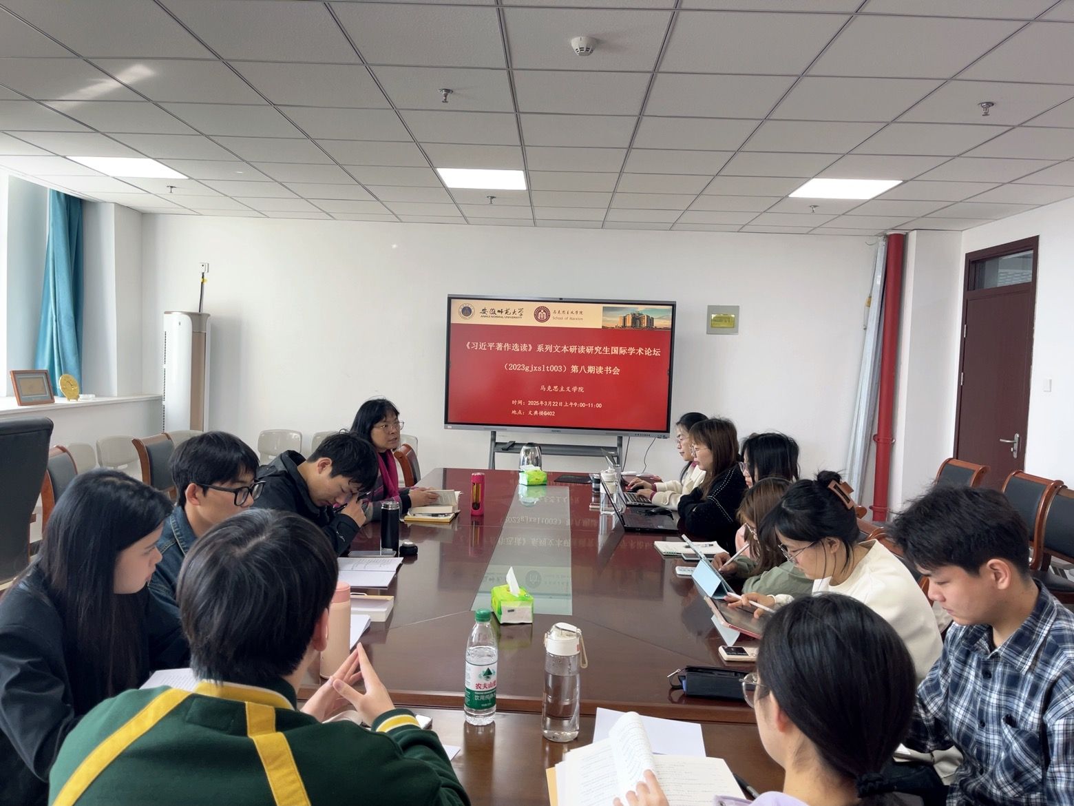 据悉,该读书会获汪盛玉老师主持的 2023 年度安徽省研究生教育质量工程项目“《习近平著作选读》系列文本研读研究生国际学术论坛(2023gjxslt003)” 支持。为进一步深化师生之间的学术交流,激发创新思维,实现共同成长,让学术思想在交流中碰撞出智慧火花,项目组计划在未来持续举办系列读书会。