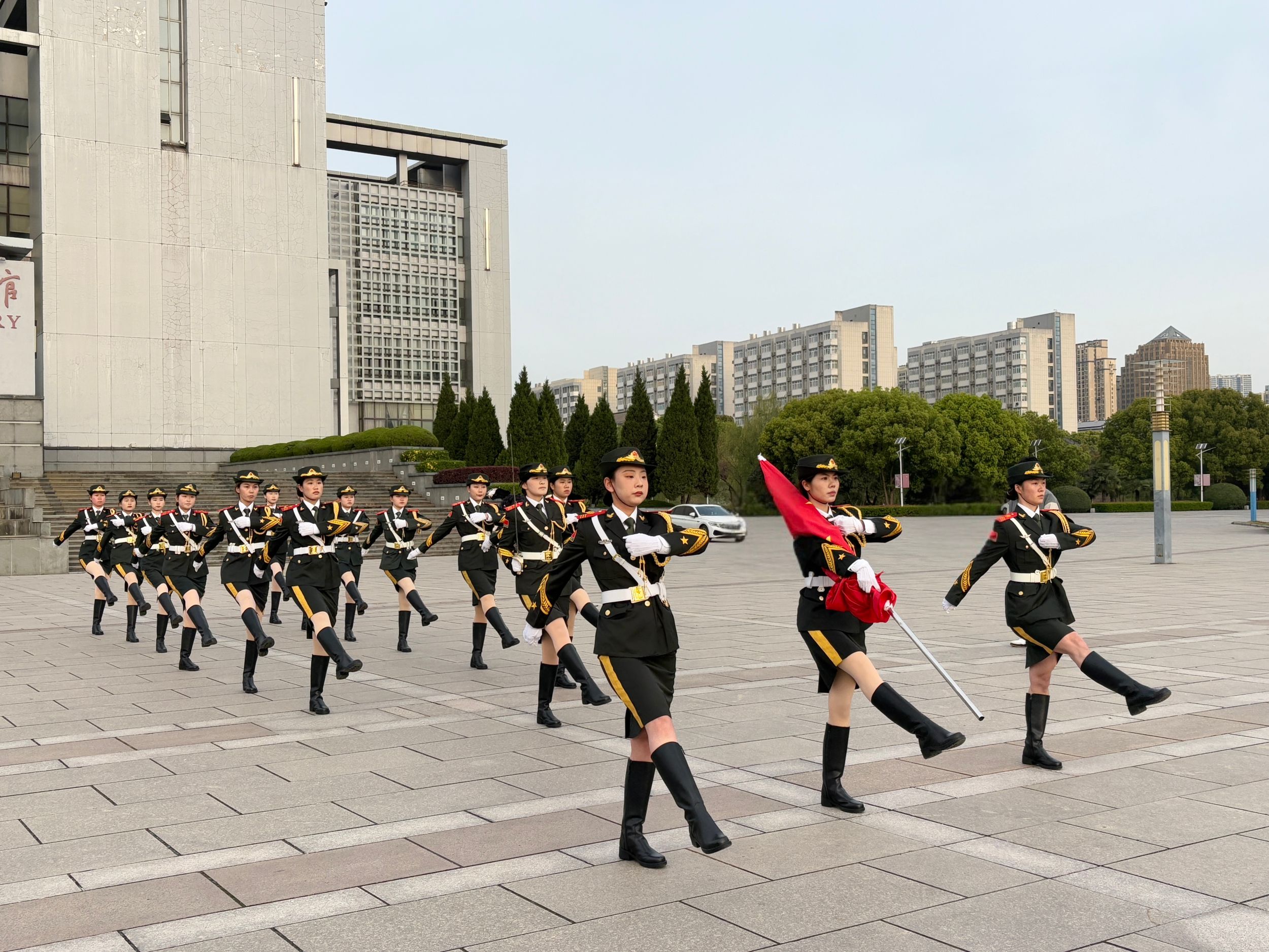 早晨七时整,国旗护卫队步伐刚劲,庄严护送五星红旗入场。国歌《义勇军进行曲》奏响之际,全体师生肃穆而立,目光紧随冉冉升起的国旗,激昂旋律中涌动着炽热的爱国深情。