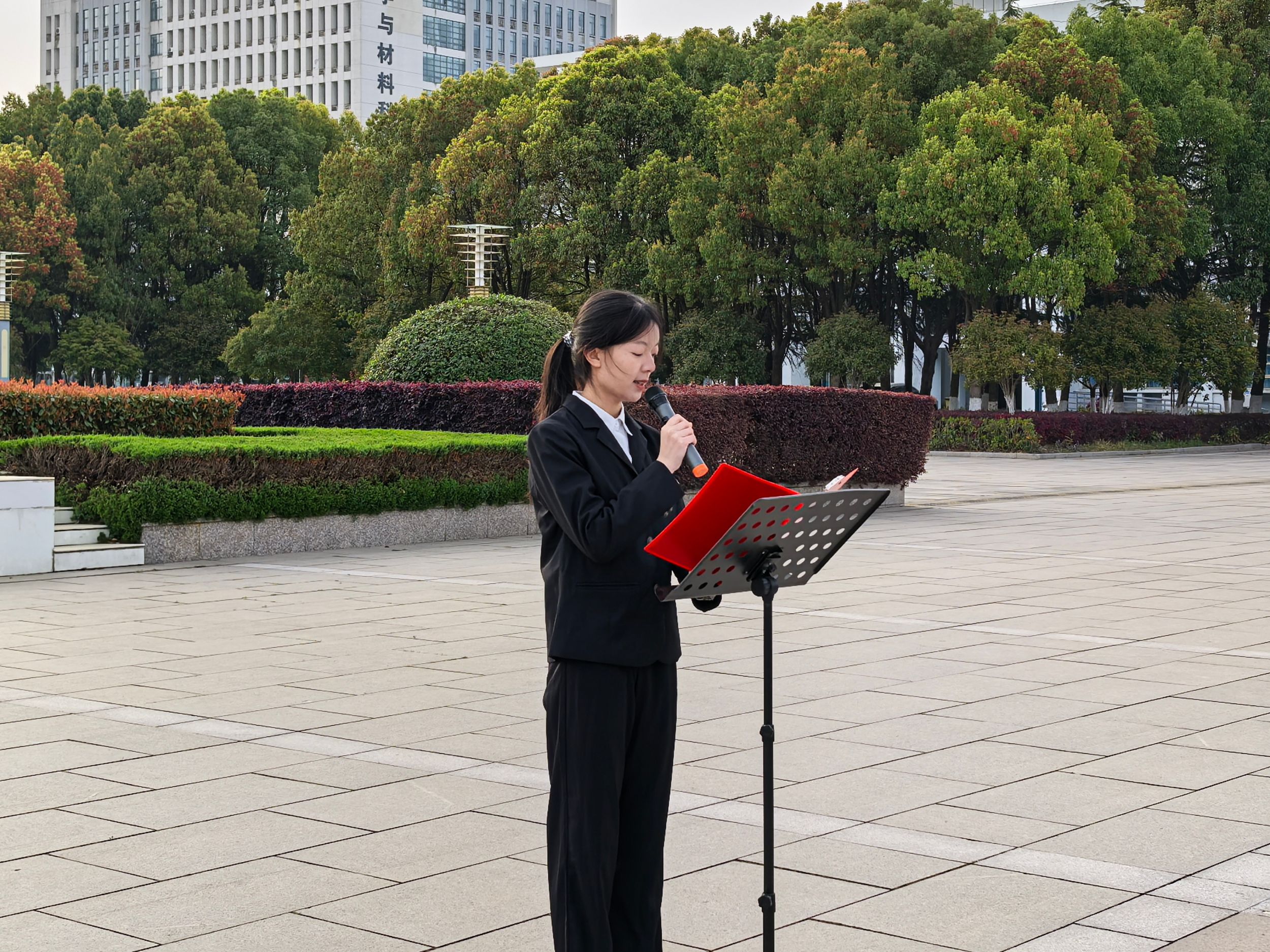 2021级思想政治教育专业本科毕业生代表付雨进行国旗下的发言,她表示职业选择需结合理想信念与社会价值,更需强化技能锤炼,以奋斗为底色,争做“有温度的引路人”,在新时代教育征程中贡献青春力量。
