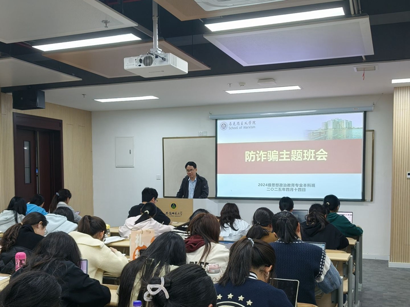 4月14日晚,2024级思想政治教育专业本科班在望道楼E209和E210教室召开防诈骗主题班会。