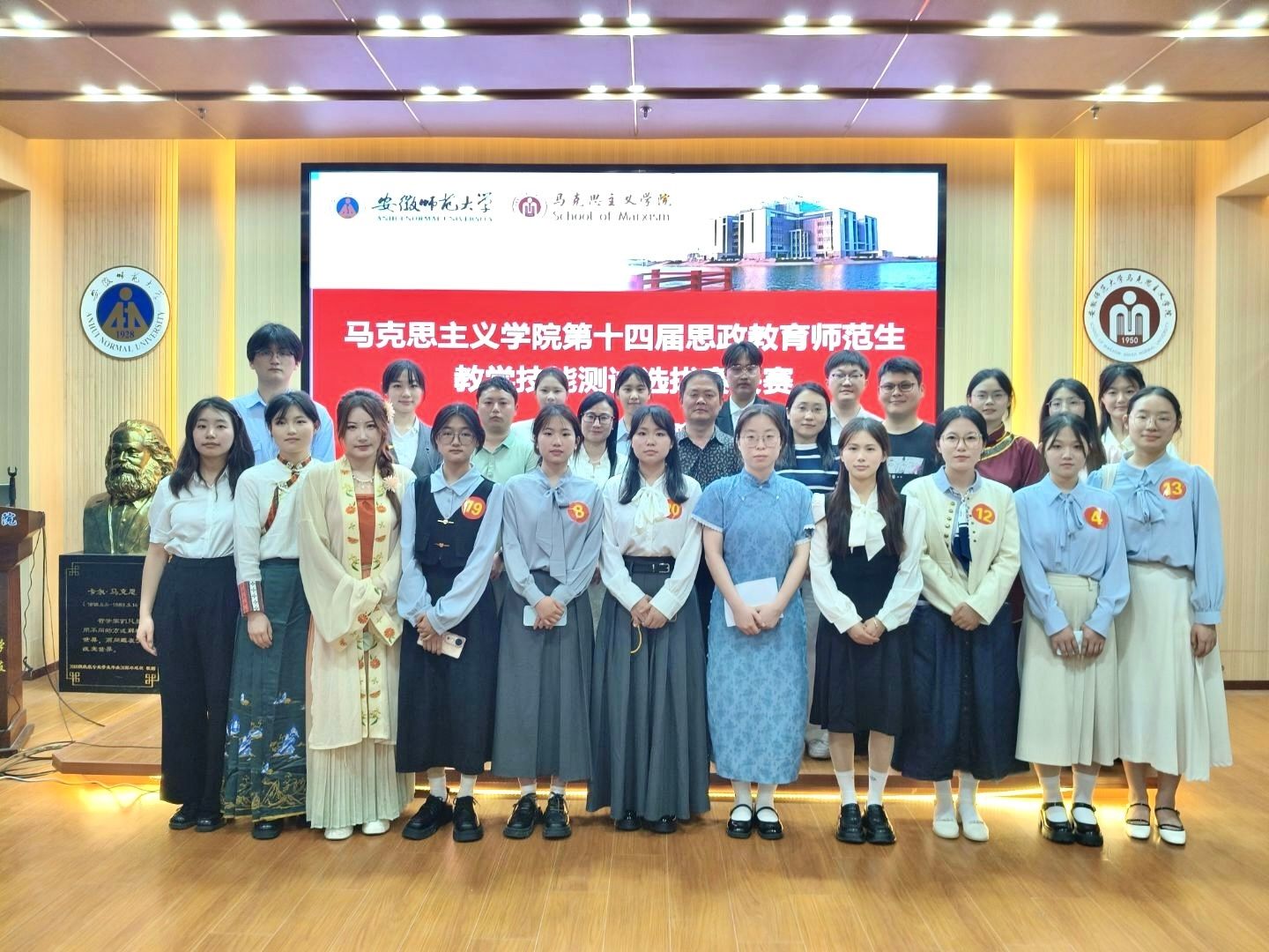 为进一步夯实师范生教学基本功,4月19日下午,beet365在文典楼G108报告厅举行第十四届思政教育师范生教学技能测试选拔赛决赛。芜湖市第二中学政治教研组组长、芜湖市中学思想政治教研大组副组长黄必向,芜湖一中教育集团延安公司董事长陶良春,芜湖市第十二中学方豪,beet365官方网站附属中学翟斌,beet365副教授孙艳秋等担任评委,共20位选手参与本次比赛。