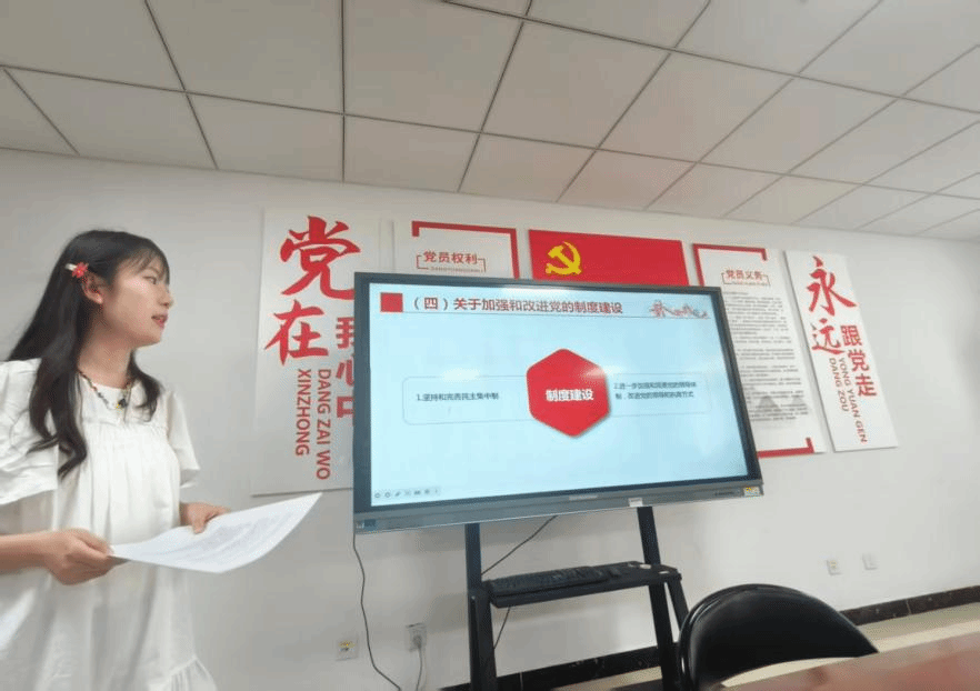各小组按照选题顺序轮流派代表上台汇报。依次为:第三组《“三个代表”重要思想对新时期加强党的建设的背景、内容与意义》、第二组《基于新时代背景下加强党的建设的重要性和紧迫性研究》、第一组《三个代表重要思想的人本精神探析》、第五组《“三个代表”重要思想指引下的全面从严治党实践路径研究》、第四组《“三个代表”重要思想在全面从严治党中的历史实践与当代启示》。每个小组汇报结束后,同学们积极发言,围绕汇报内容各抒己见,现场讨论氛围热烈。