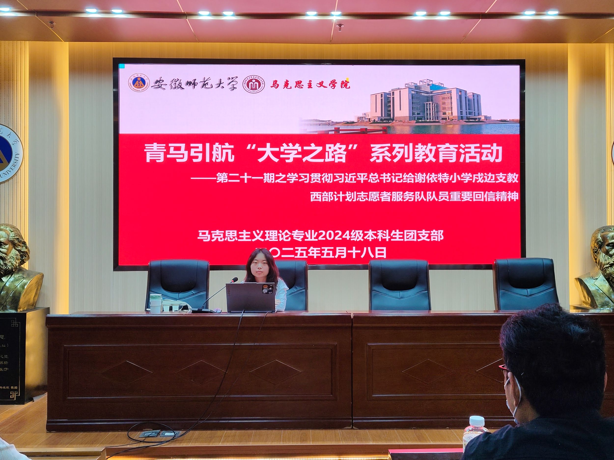 为进一步增强青年员工的责任感与使命感,5月18日晚,2024级马克思主义理论专业于文典楼G108开展了主题团日活动,本次活动由团支书陈沁茹同学主持,全体同学参加。