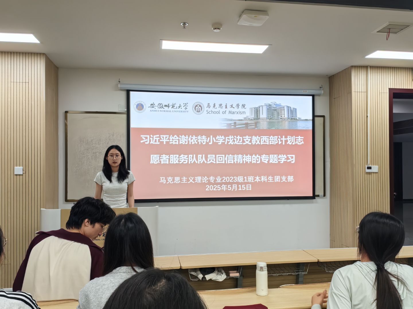 为深入学习习近平总书记给谢依特小学戍边支教西部计划志愿者服务队队员重要回信精神,激发青年学子使命感,5月15日,2023级本科生各班团支部开展主题团日活动,通过原文研学、互动研讨、青春宣誓等环节,推动理论学习走深走实、见行见效。