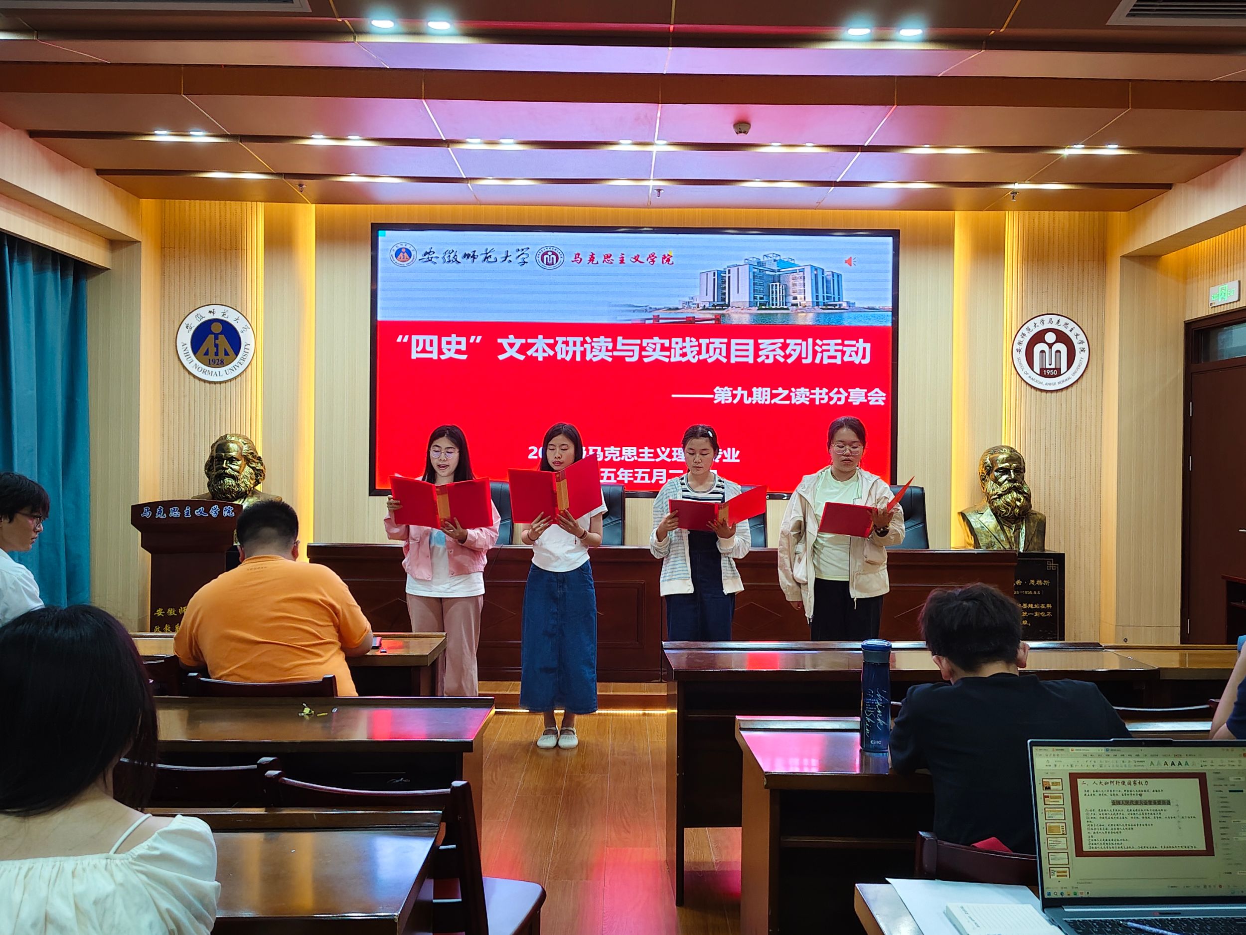 5月20日下午,“四史”文本研读与实践项目组在文典楼G108报告厅开展第九期项目系列活动。此次活动邀请2024级马克思主义理论专业读书小组参与,活动由汪烨和郭子恒同学主持,项目负责人夏盼盼及项目组主要成员参加。