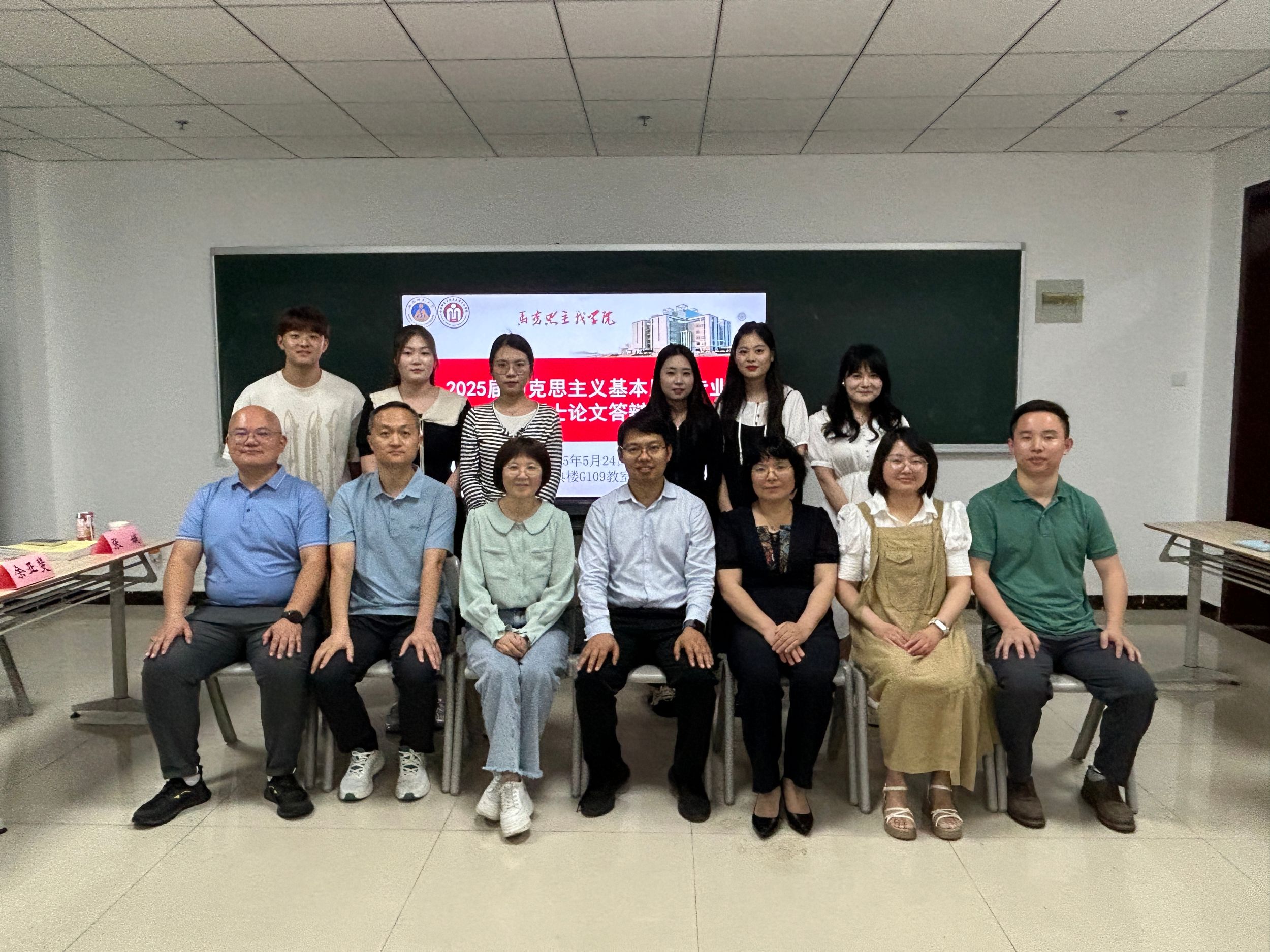 2025年5月24日下午2:30,2022级马克思主义基本原理专业硕士学位论文答辩会分两组在文典楼G105和G109举行。本次答辩特邀《学术界》杂志社副社长汪家耀和北京大学研究员董彪担任各组的答辩主席,学位点导师彭启福、戴兆国、余在海、季爱民、胡梅叶、方敏和汪盛玉、吴兴华、余亚斐、张添翼、张娥、张涛担任各组的答辩委员,陈德洋、潘二亮老师担任答辩秘书。