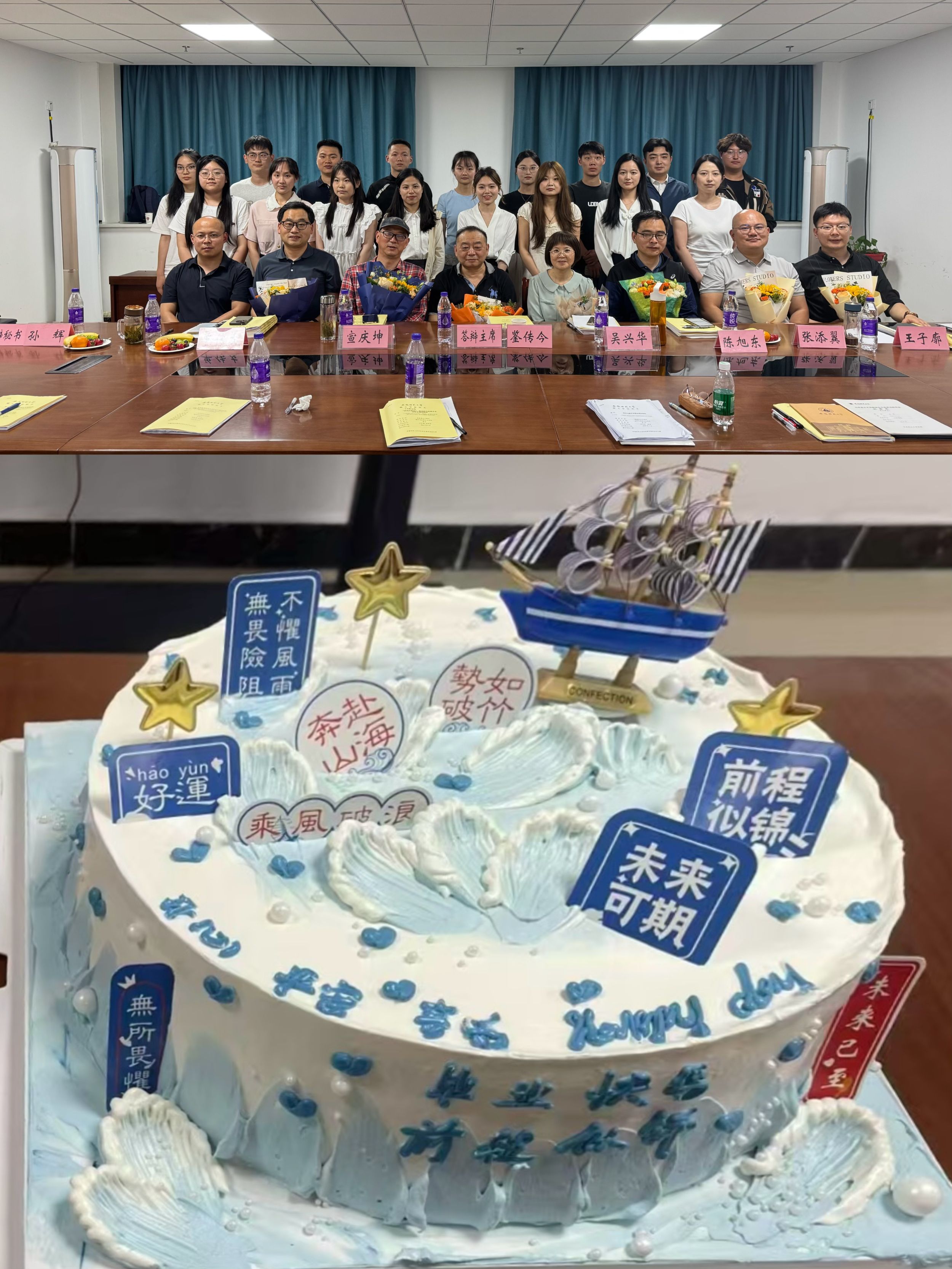 欢送会伊始,研一研二同学为即将毕业的学长学姐专门订购了寓意乘风破浪,前程似锦的毕业欢送蛋糕,精心准备了毕业礼物,为毕业生学长学姐送上满满祝福。会上,各位老师和2023级和2024级研究生代表用真挚的情感和语言表达对毕业生学长学姐的不舍之情,祝愿他们毕业快乐,前程似锦,希望他们常回家看看。各位毕业生为自己的导师订购了鲜花,并在贺卡上写下了对师恩的诚挚感谢和对老师的真诚祝福。最后,在欢送会即将结束时,各位毕业生纷纷与自己的导师合影留念,留下令人回味的人生回忆照片。