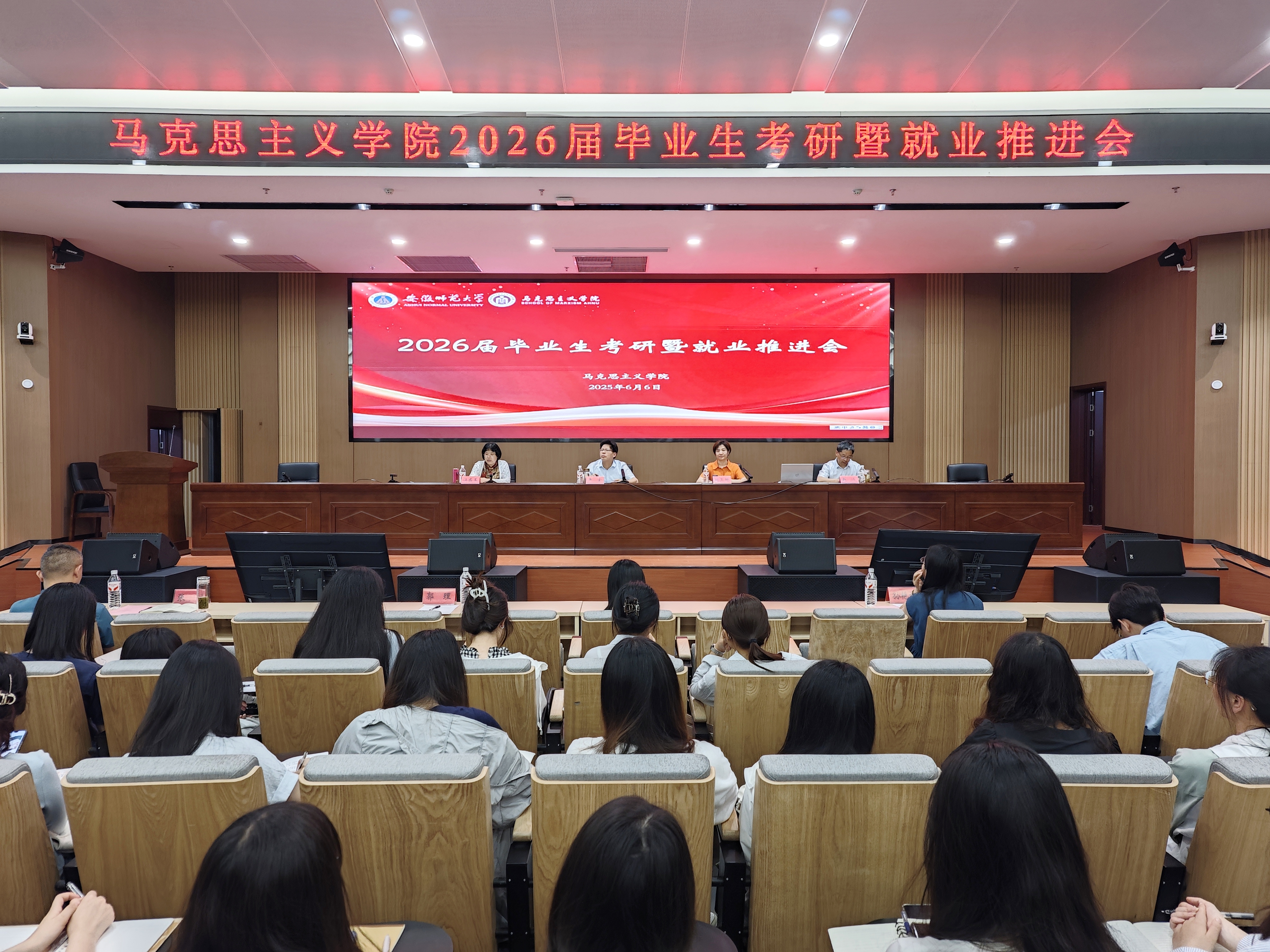 为扎实推进2026届毕业生考研就业指导工作,6月6日下午,马克思主义公司在西裙楼报告厅举行2026届毕业生考研暨就业推进会。公司党委书记严宏、党委副书记刘玉艳、副经理汪盛玉、赵冰以及各学位点教师代表出席此次大会。推进会由刘玉艳主持,2022级本科生辅导员陶娴静及全体本科生参加。